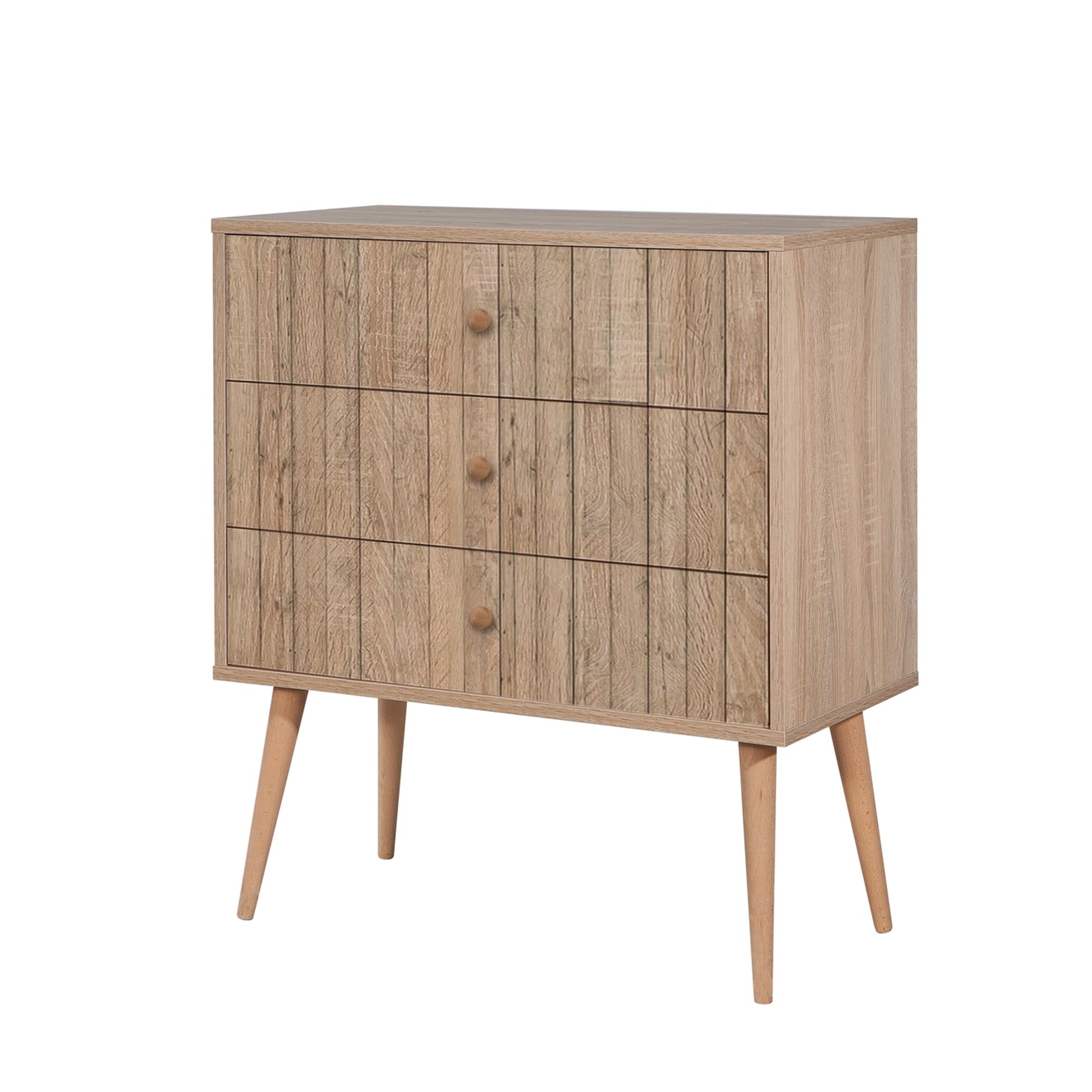 City Trio Sonomo Desenli Şifonyer, yatak odanızda depolama ihtiyacını sanatla buluşturur. 80 cm genişliği ve derin iç hacme sahip 3 adet çekmecesiyle kıyafetleriniz ve kişisel eşyalarınız için geniş bir alan sunar. Sonomo rengi üzerine uygulanan özel UV dijital baskı deseni ve 30 cm yüksekliğindeki masif konik ayakları, ürüne retro ve modern bir kimlik kazandırır.