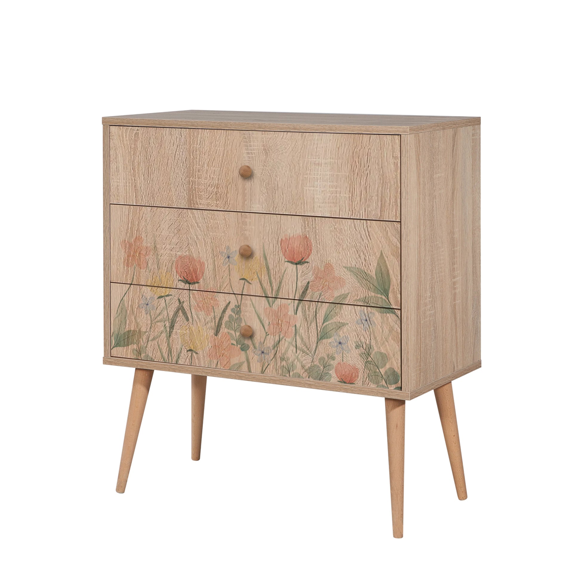 City Trio Şifonyer, hem makyaj masası tamamlayıcısı hem de çamaşırlık olarak kullanılabilecek ideal boyutlara sahiptir. Teknik çizimde görülen 18,5 cm ön yüksekliğe sahip 3 büyük çekmece, kazaklar, tişörtler veya nevresimler için hacimli bir saklama alanı yaratır. Ürünün 30 cm yüksekliğindeki masif ahşap ayakları, temizliği kolaylaştırırken odaya ferah bir hava katar. UV baskı teknolojisi sayesinde ön yüzeydeki desenler solmaz ve uzun yıllar şıklığını korur.
