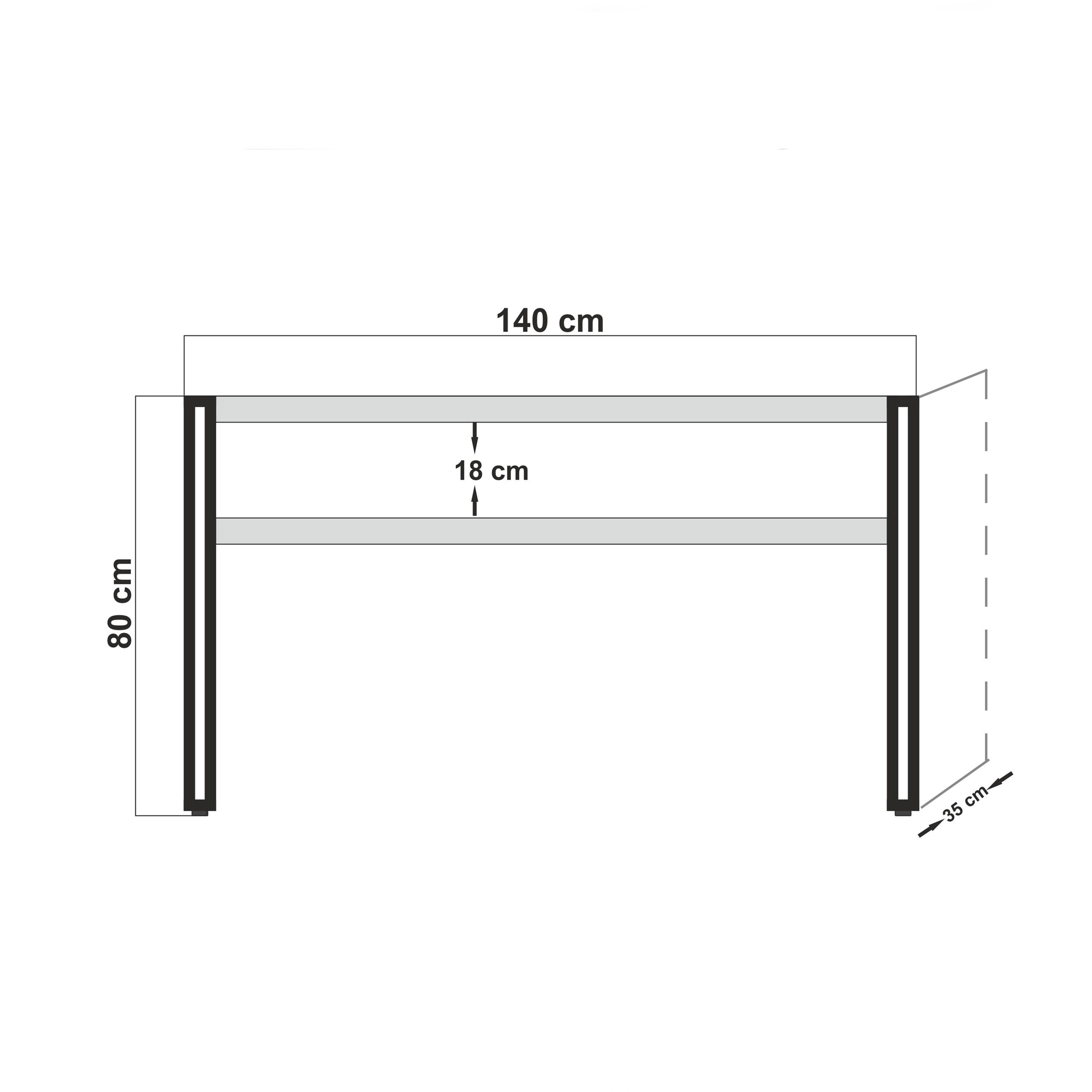 • Raf Aralığı: 18 cm (İki raf arası net boşluk) Raf Genişliği: 140 cm Raf Sayısı: 2 Katlı