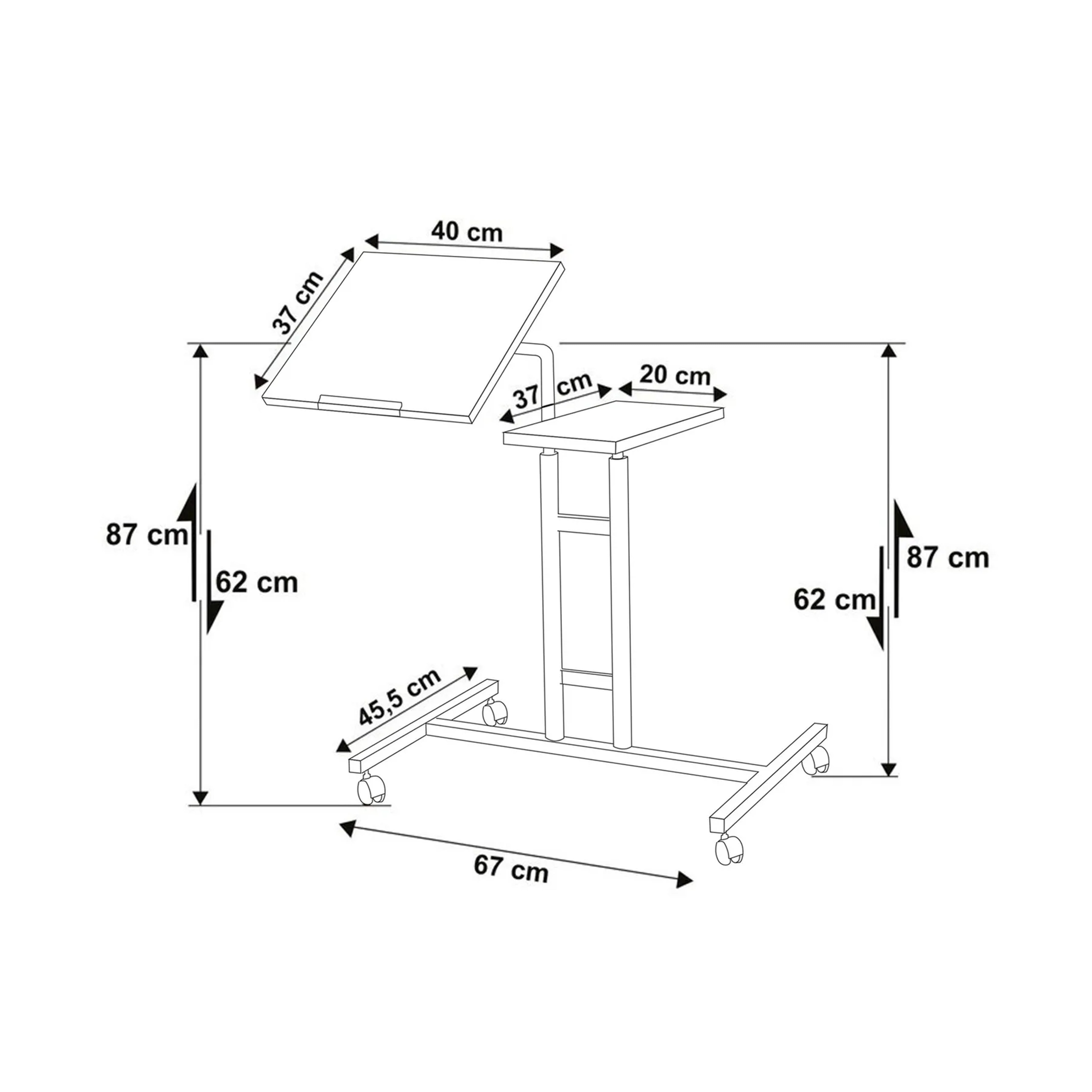 - Hareketli Tabla: 40 x 37 cm (Eğim verilebilir) Sabit Tabla: 20 x 37 cm (Mouse/Bardak alanı) Toplam Genişlik: 60 cm (Yan yana kullanımda)