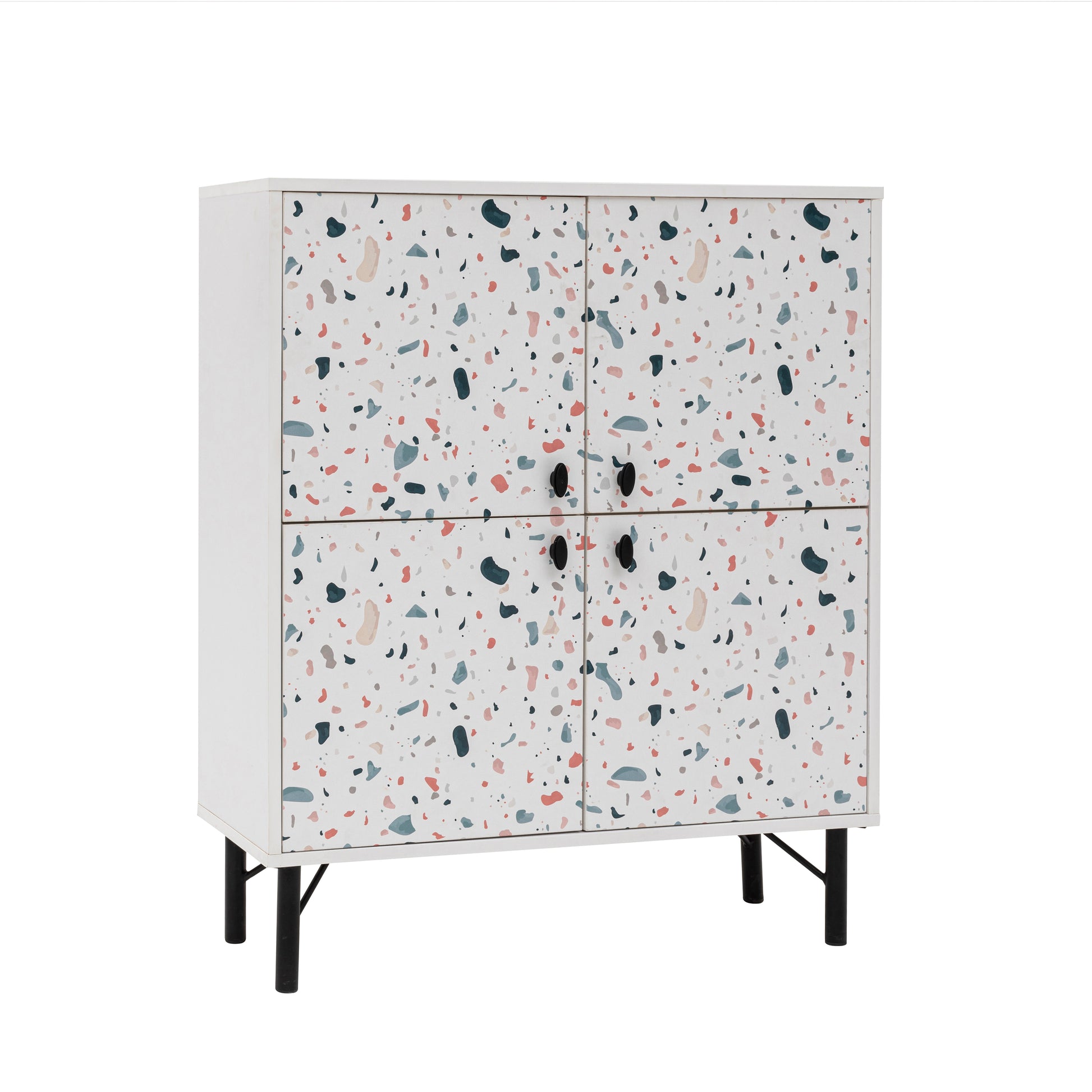 Multilüx Beyaz Desenli Sia Çok Amaçlı Dolap, geniş iç hacmi ve şık metal ayaklarıyla evinize modern bir dokunuş katar. 95 cm genişliği ve ideal raf aralıklarıyla antrede ayakkabılık, salonda konsol veya mutfakta erzak dolabı olarak kullanabileceğiniz joker bir parçadır. Beyaz gövdesi ve yerden yüksek siyah metal ayakları, temizlik kolaylığı sağlarken mekanınıza ferahlık kazandırır.