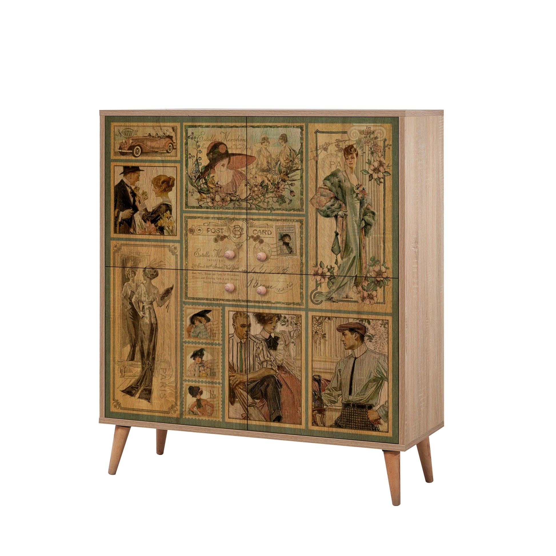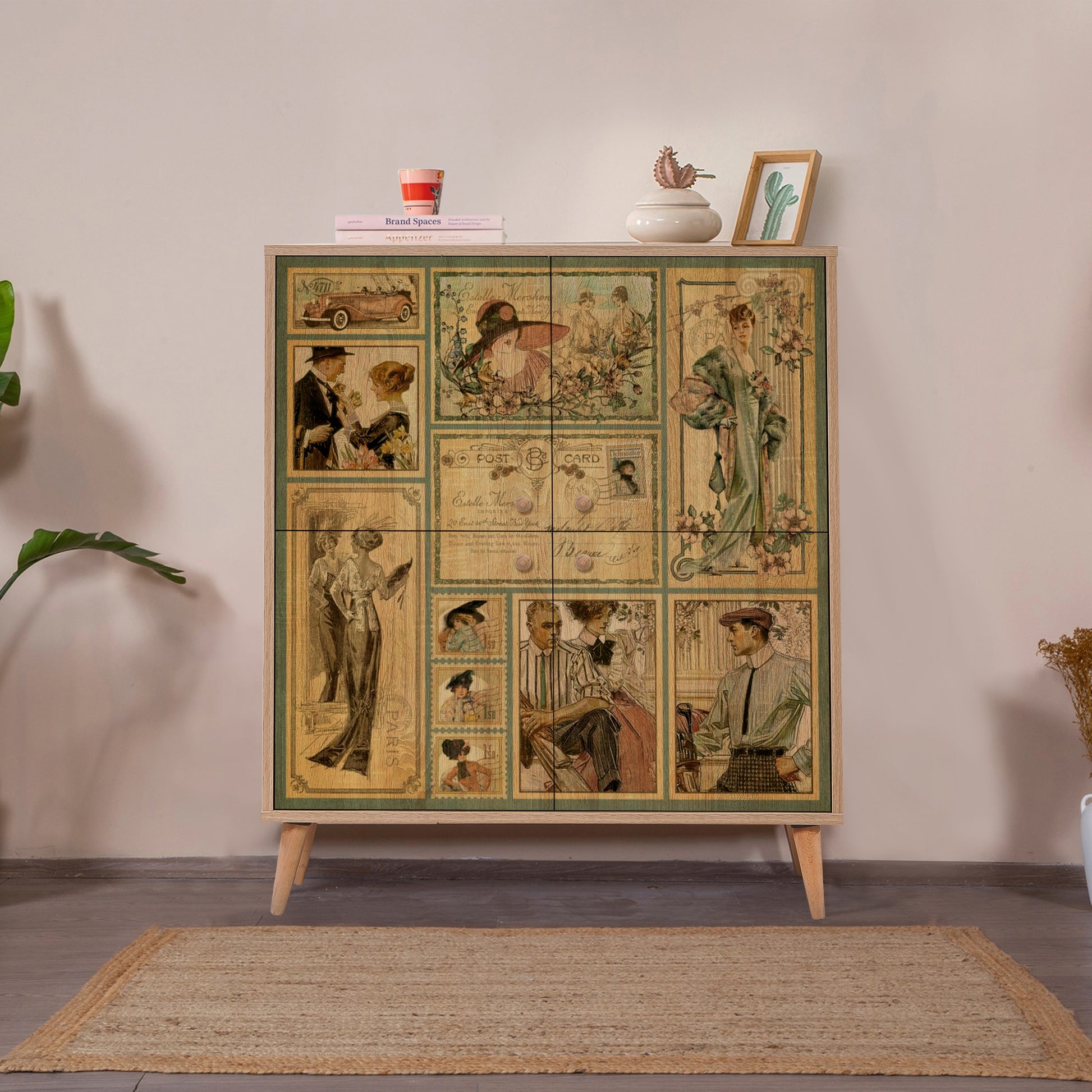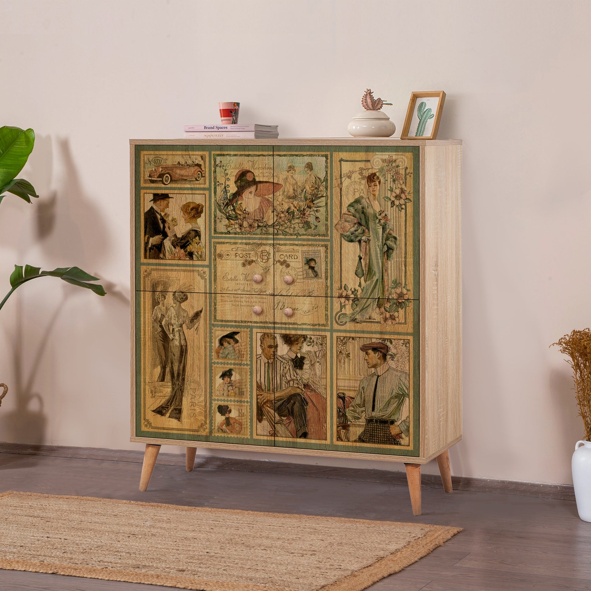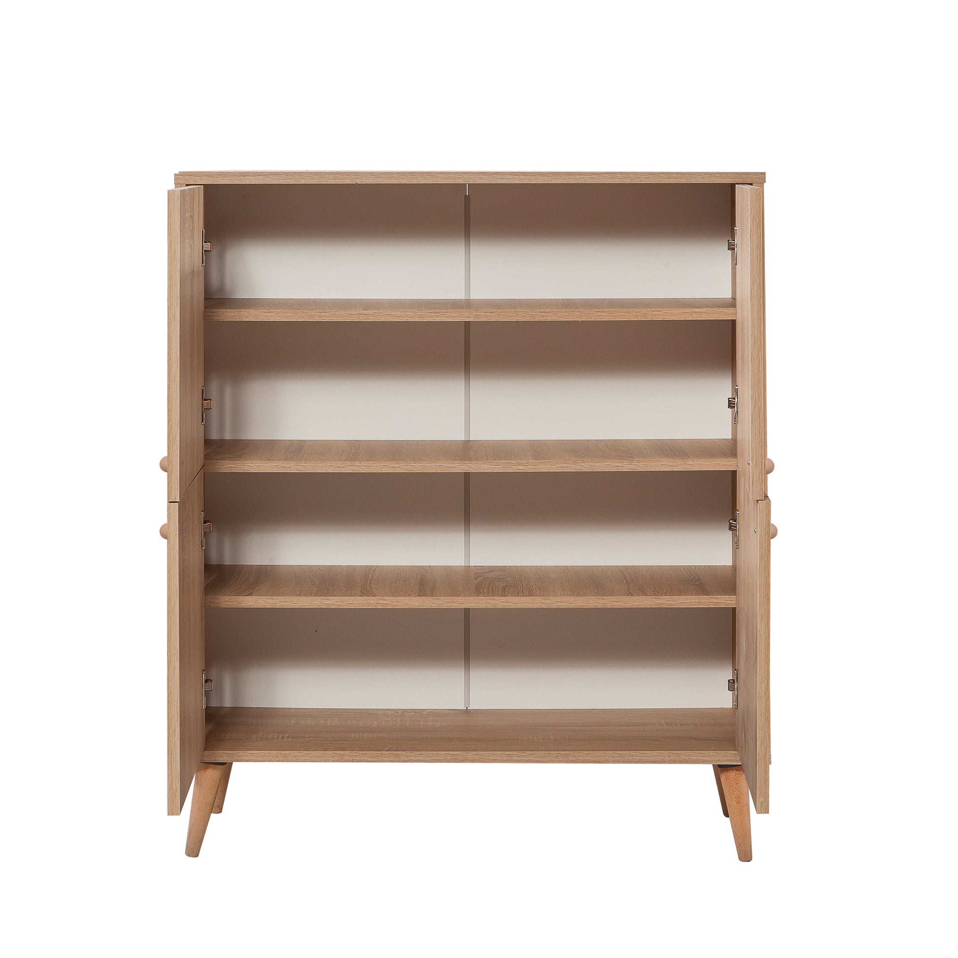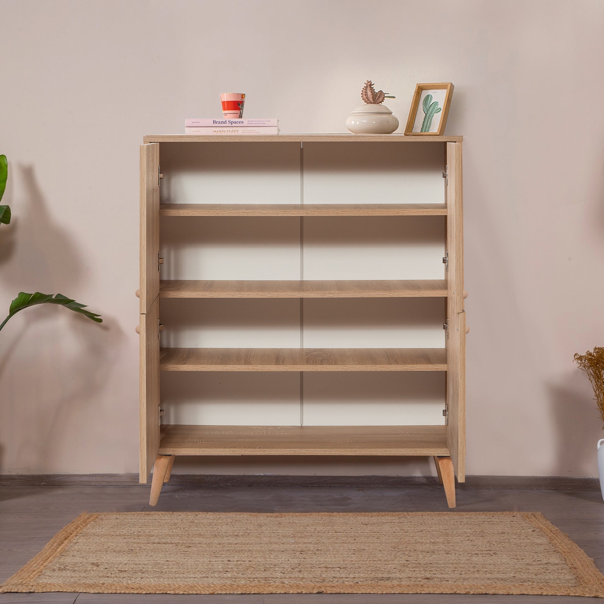 Multilüx Sonomo Desenli Art Çok Amaçlı Dolap, Sonomo renginin doğal dokusunu, Art serisine özel konik masif ahşap ayaklarla buluşturur. 95 cm genişliği ve 4 katlı raf düzeniyle geniş bir depolama alanı sunarken, açılı ayak tasarımıyla bulunduğu mekana modern-retro bir atmosfer katar. Antrede ayakkabılık, salonda konsol veya mutfakta erzak dolabı olarak çok yönlü kullanıma uygundur.
