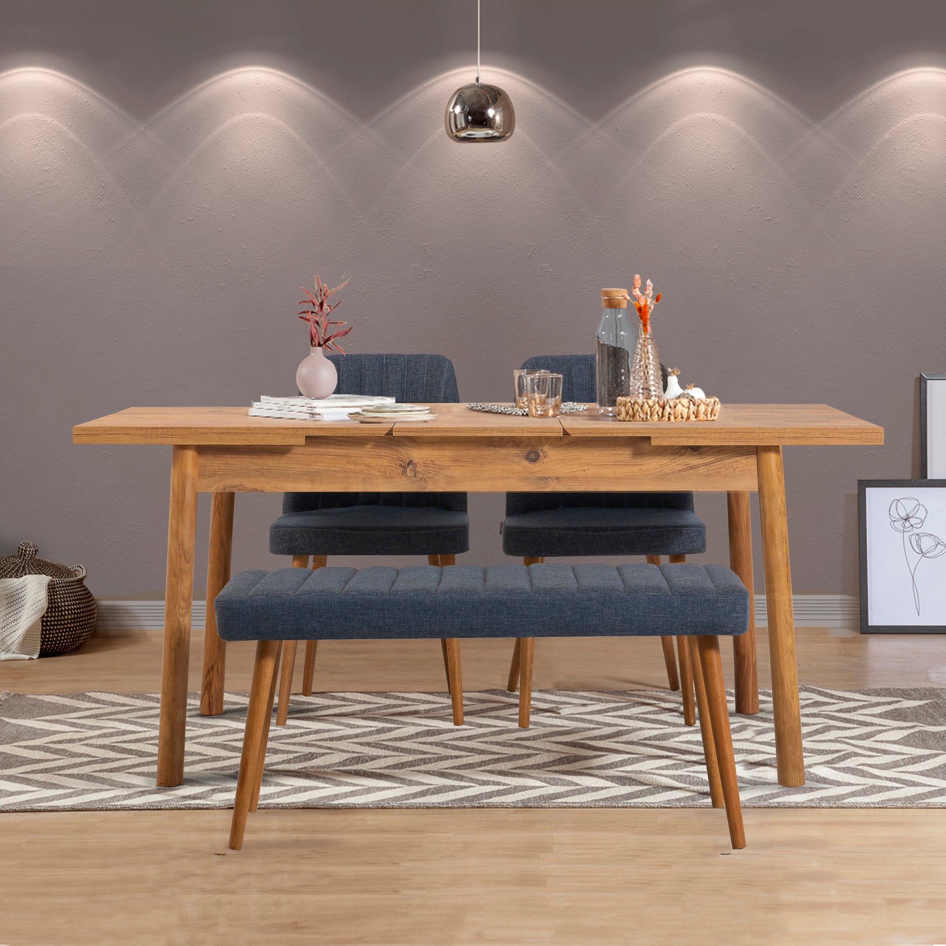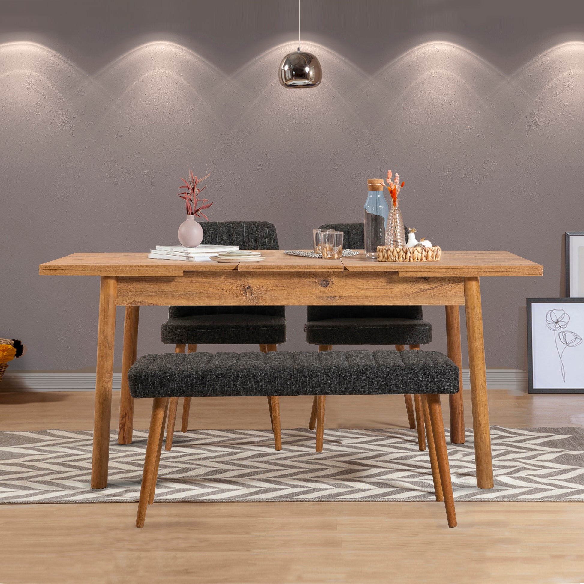 Stormi Açılır Mutfak Masa Takımı, Beyaz ve Antrasit renklerin modern uyumunu mutfağınıza taşır. 1 Açılır Masa + 2 Sandalye + 1 Bench içeriğiyle hem günlük kullanımda yer tasarrufu sağlar hem de misafirleriniz için kolayca genişler. 1. kalite suntalam yapısı ve keten kumaş detaylarıyla şıklığı ve dayanıklılığı bir arada sunar.