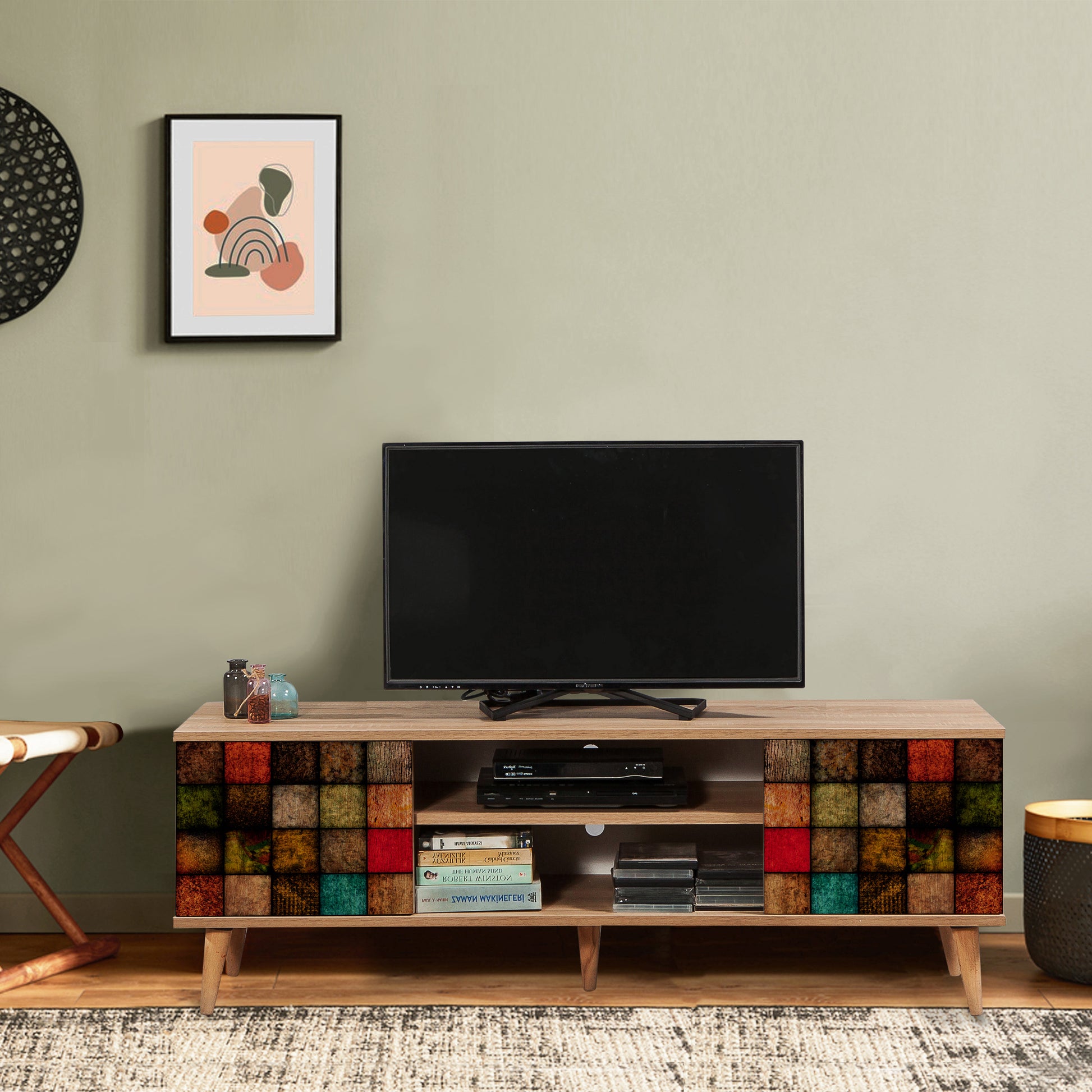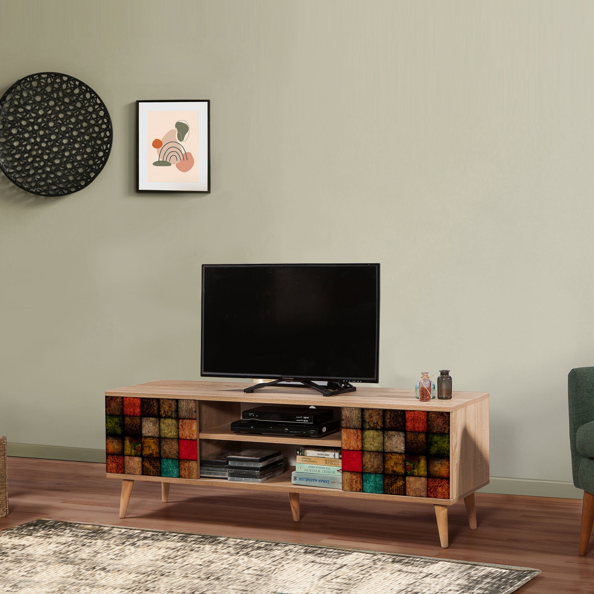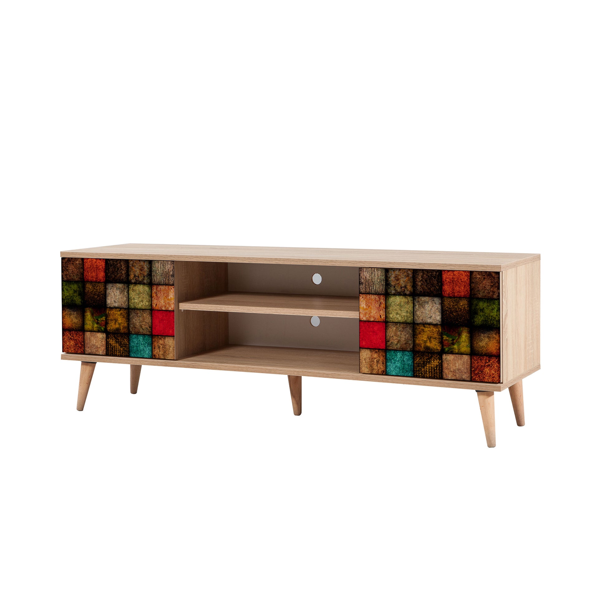 Truva TV Sehpası, Art Sonomo desenli yüzeyi ve masif ahşap ayaklarıyla yaşam alanınıza sanatsal bir dokunuş katar. 140 cm genişliği ile televizyonunuz için ideal bir platform sunarken, ultraviyole dijital baskı teknolojisi sayesinde uzun yıllar canlılığını koruyan estetik bir görünüm sağlar.