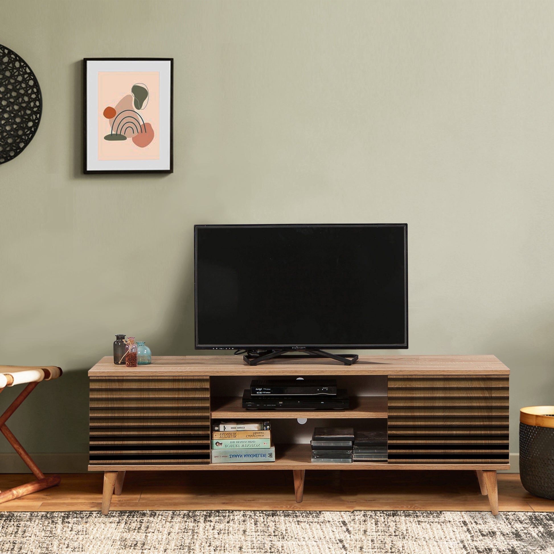 Truva TV Sehpası, Art Sonomo desenli yüzeyi ve masif ahşap ayaklarıyla yaşam alanınıza sanatsal bir dokunuş katar. 140 cm genişliği ile televizyonunuz için ideal bir platform sunarken, ultraviyole dijital baskı teknolojisi sayesinde uzun yıllar canlılığını koruyan estetik bir görünüm sağlar.