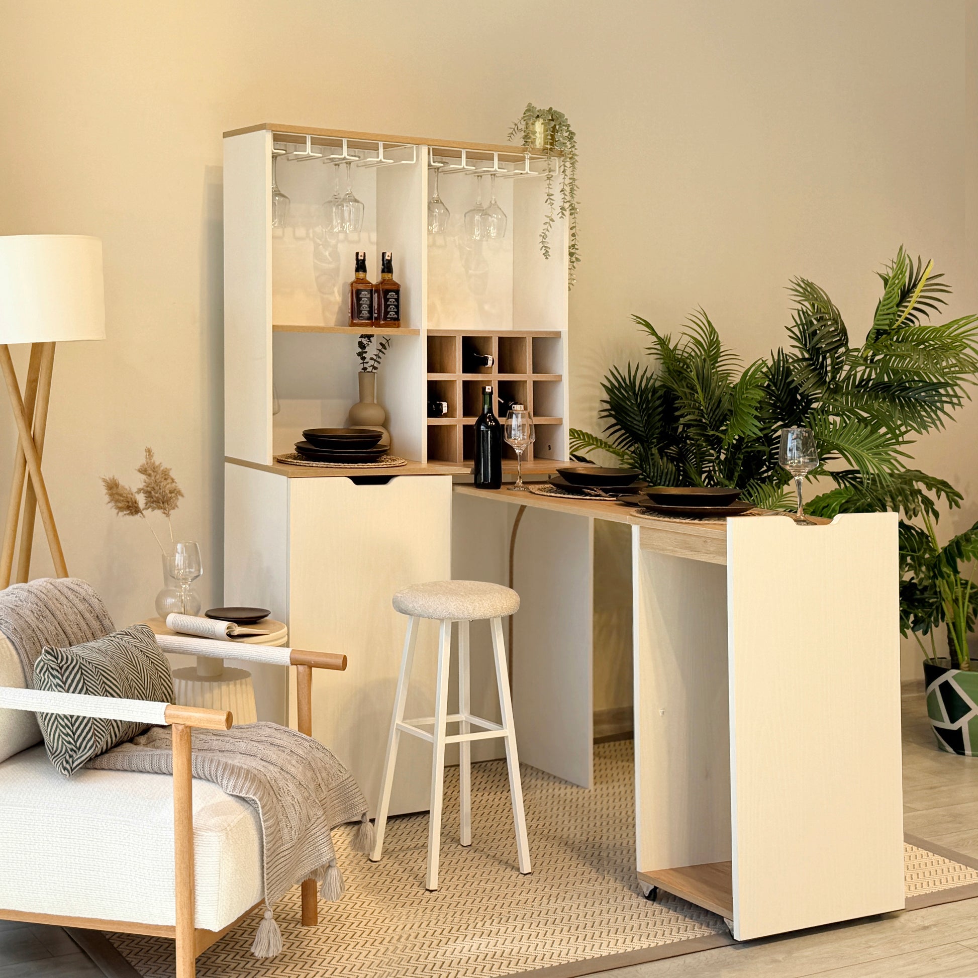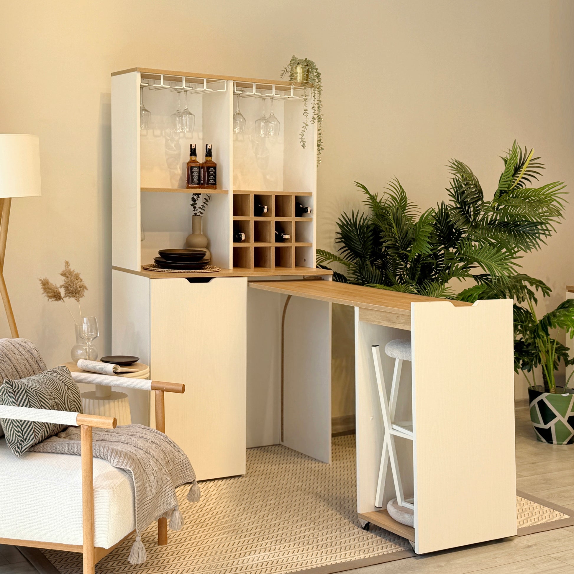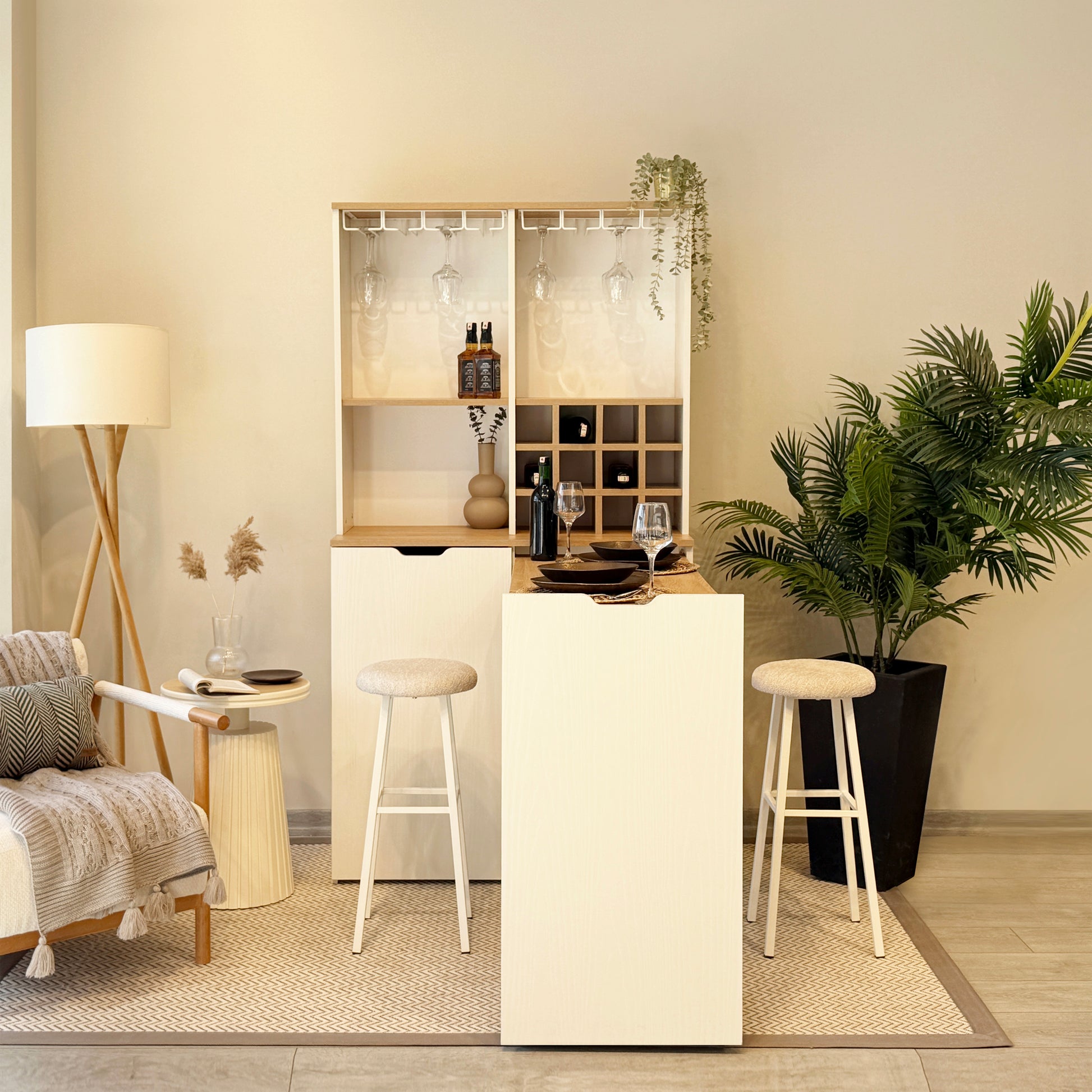 Velto Katlanabilir Masalı Mini Bar, evinizde keyifli anlar yaratmak için tasarlanmış şık ve işlevsel bir çözümdür. Karina ve Sedef renklerinin uyumuyla dikkat çeken ürün, kapalıyken şık bir dolap, açıldığında ise geniş bir masaya dönüşür. Küçük alanlarda yer tasarrufu sağlayan akılcı tasarımı ve uyumlu tabureleri ile mutfaktan salona her alana değer katar.