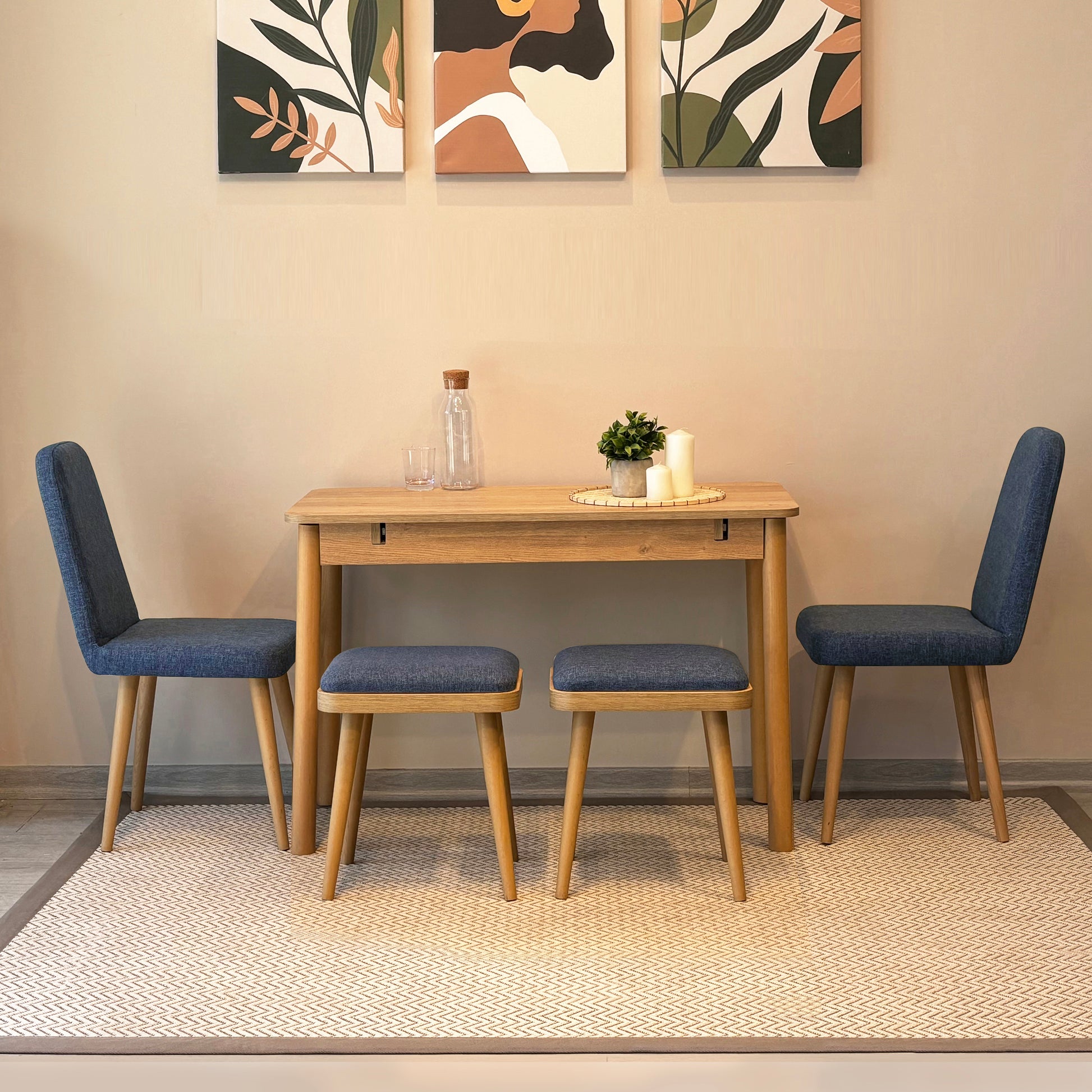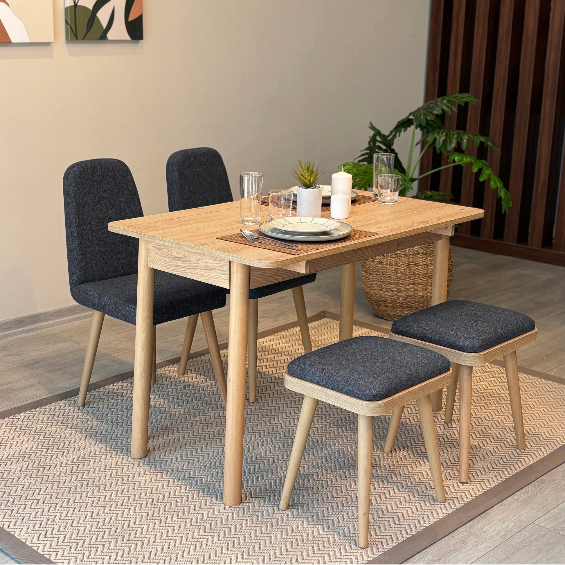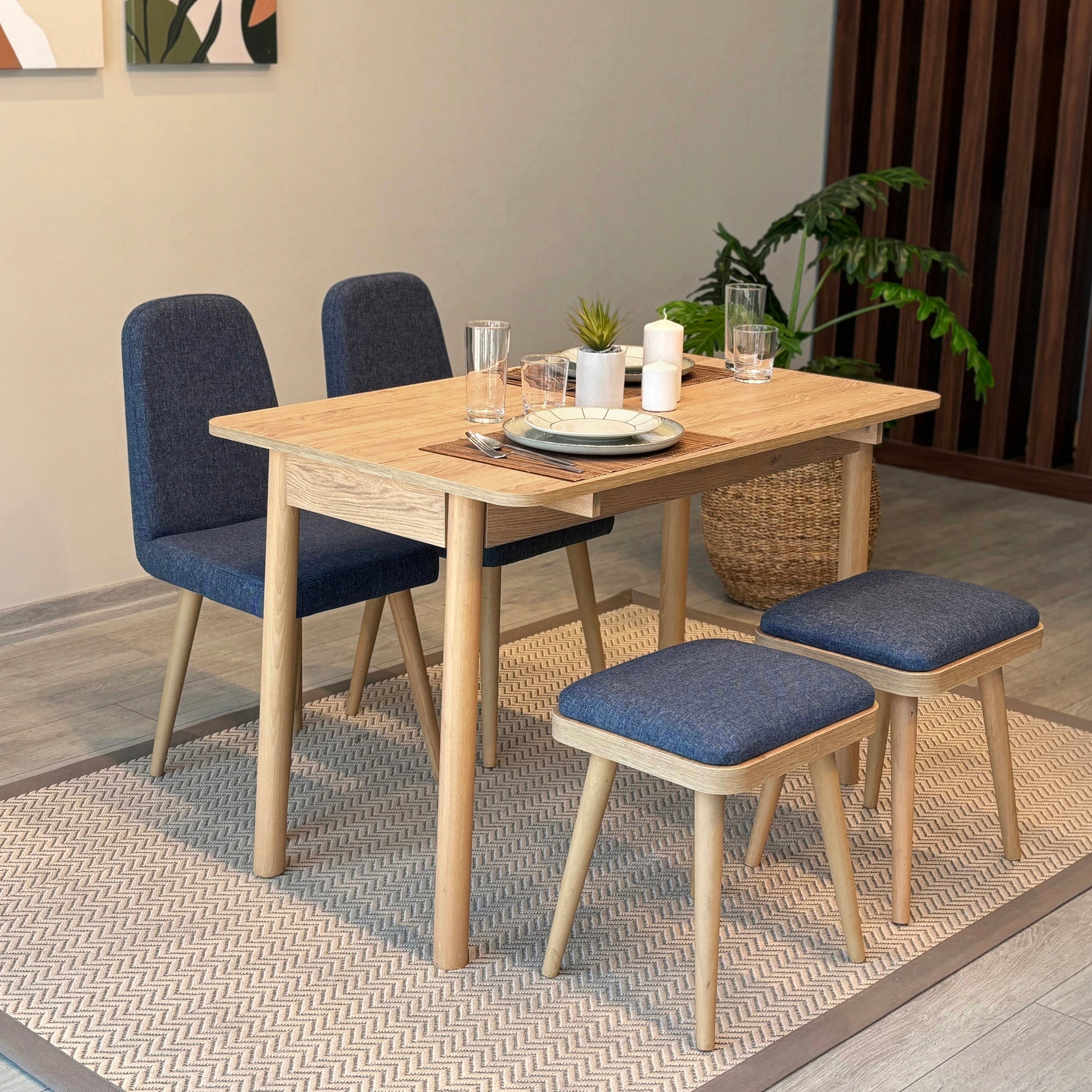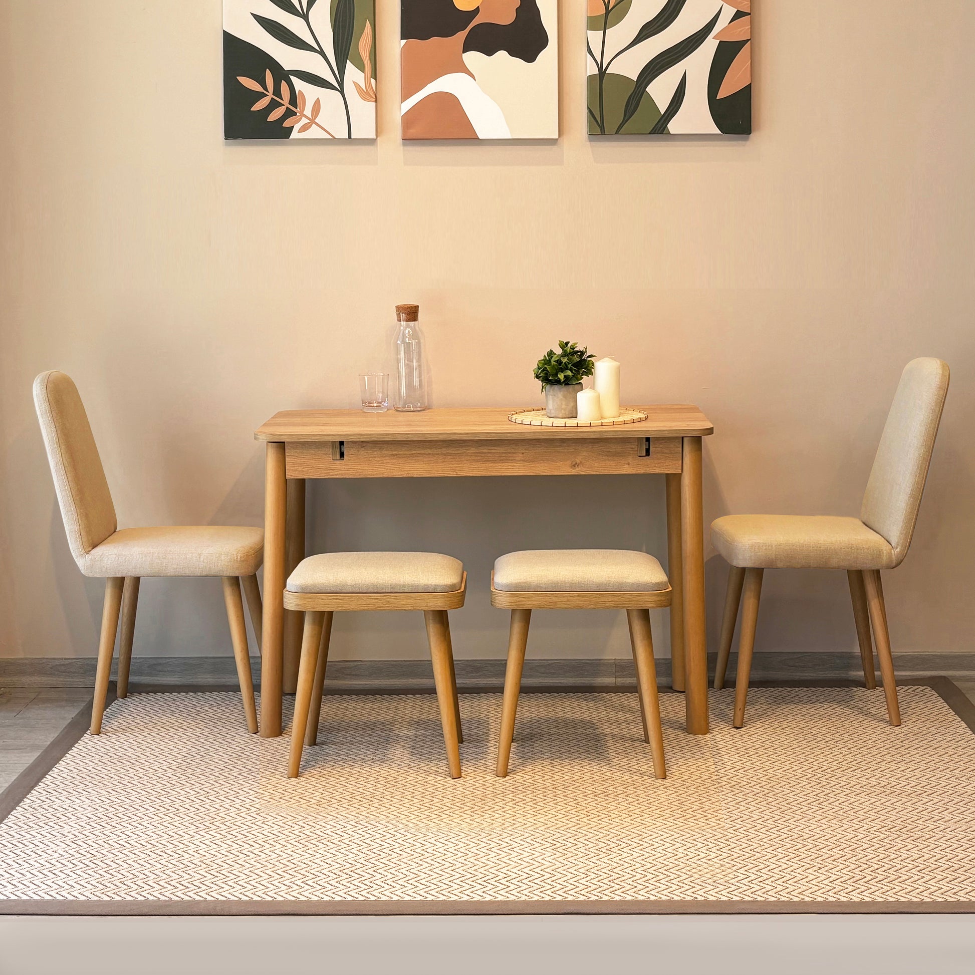 Küçük yaşam alanları için tasarlanan bu mini mutfak masa takımı, modern görünümü ve pratik kullanımıyla günlük yaşama kolaylık sağlar. 1 masa + 2 sandalye + 2 tabure içeriğiyle kompakt bir çözüm sunar ve farklı dekorasyon stillerine uyum sağlar.