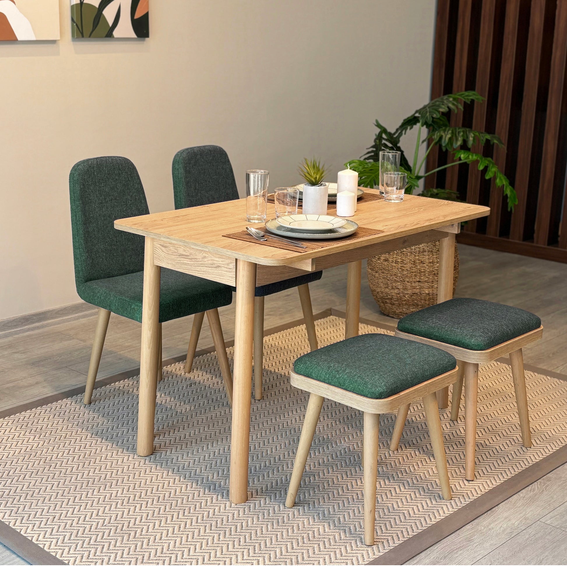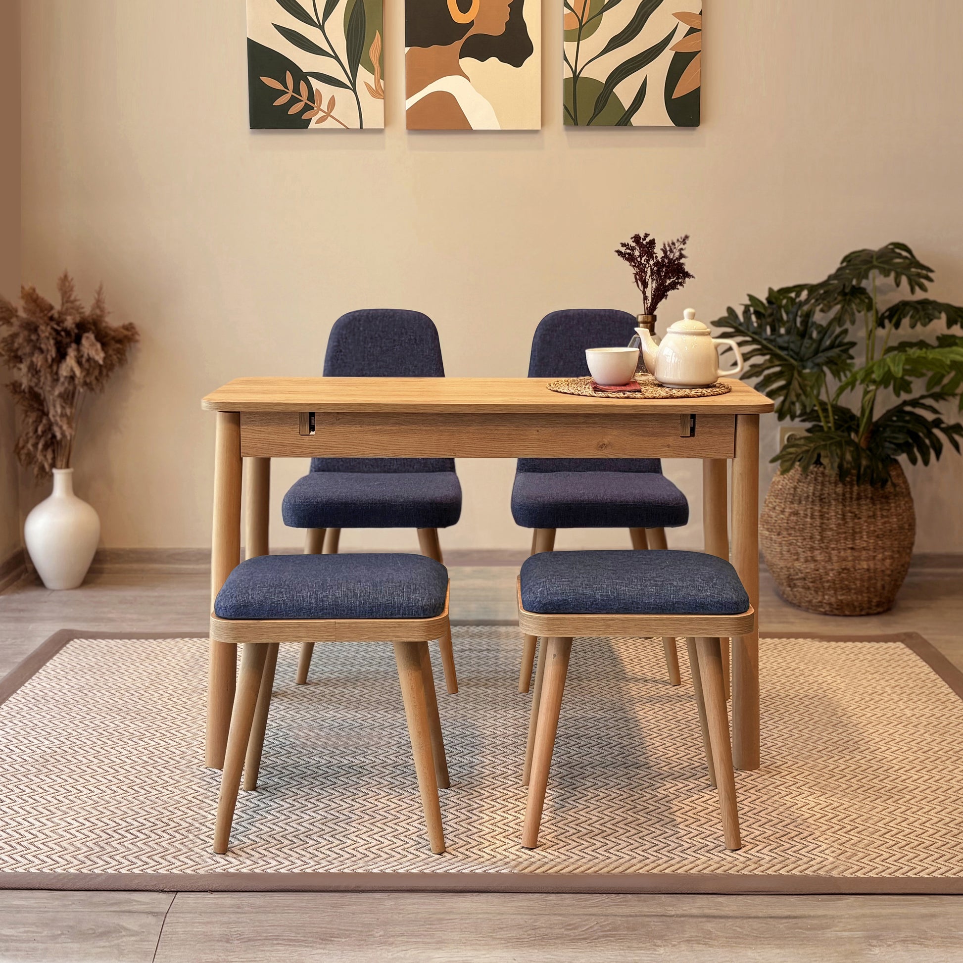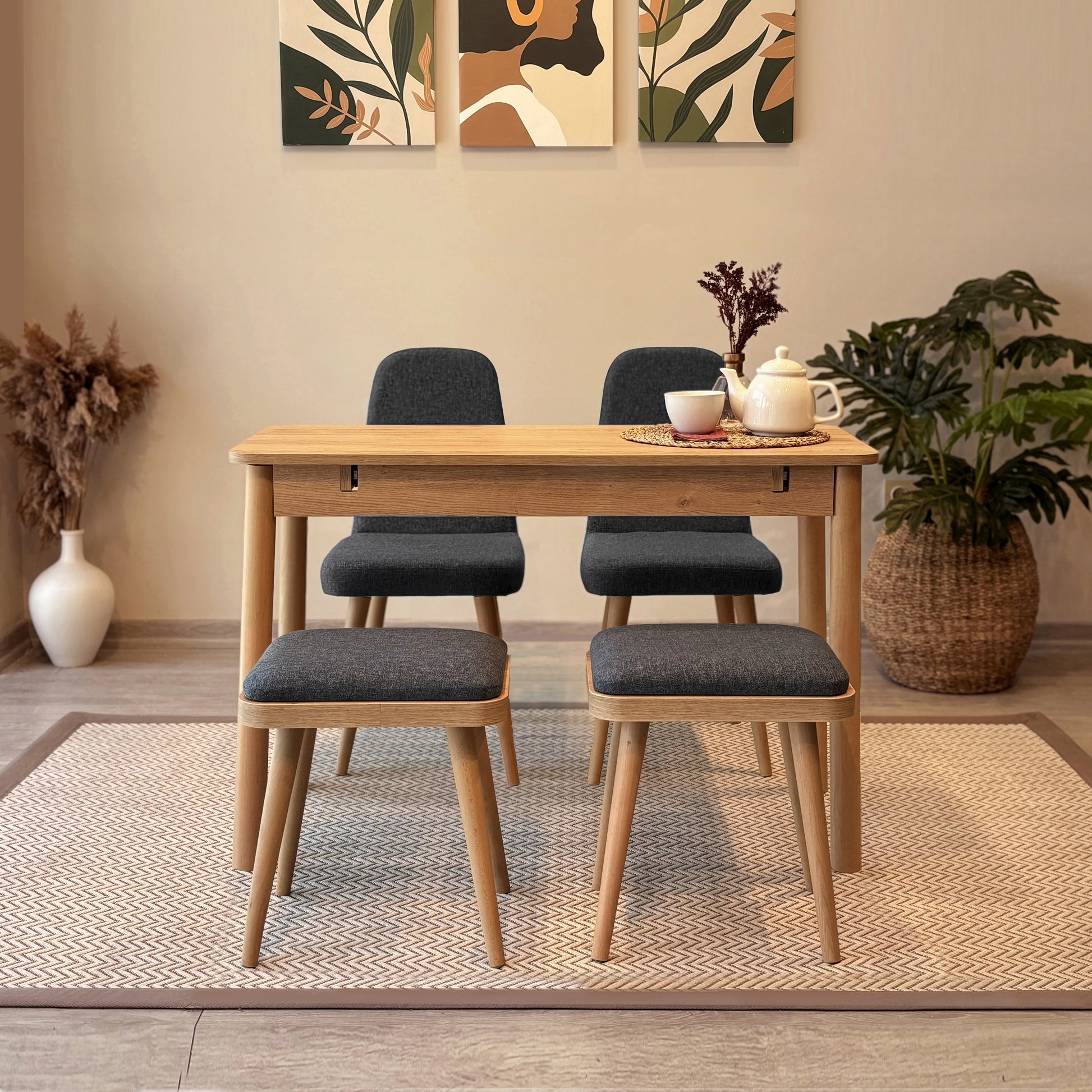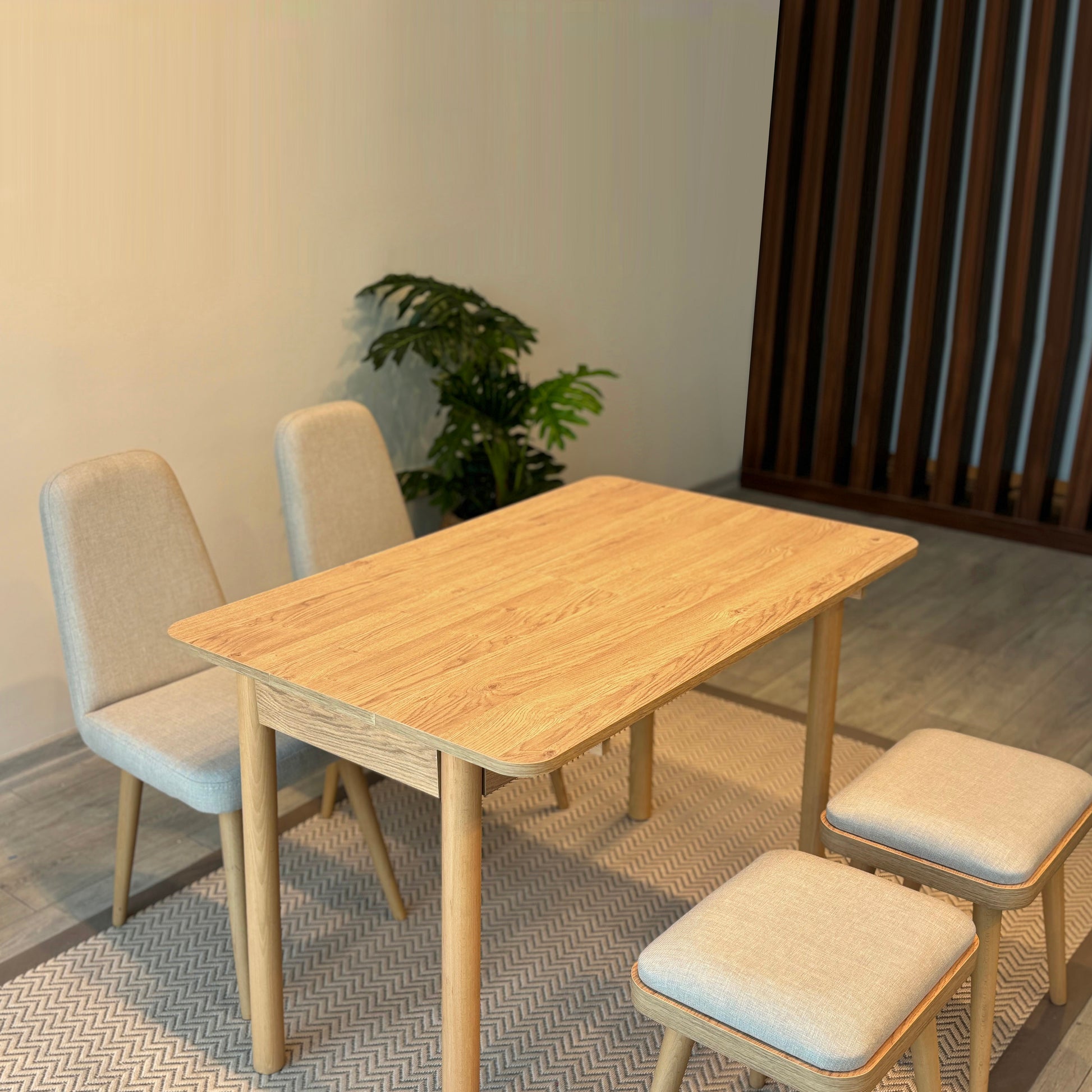Küçük yaşam alanları için tasarlanan bu mini mutfak masa takımı, modern görünümü ve pratik kullanımıyla günlük yaşama kolaylık sağlar. 1 masa + 2 sandalye + 2 tabure içeriğiyle kompakt bir çözüm sunar ve farklı dekorasyon stillerine uyum sağlar.