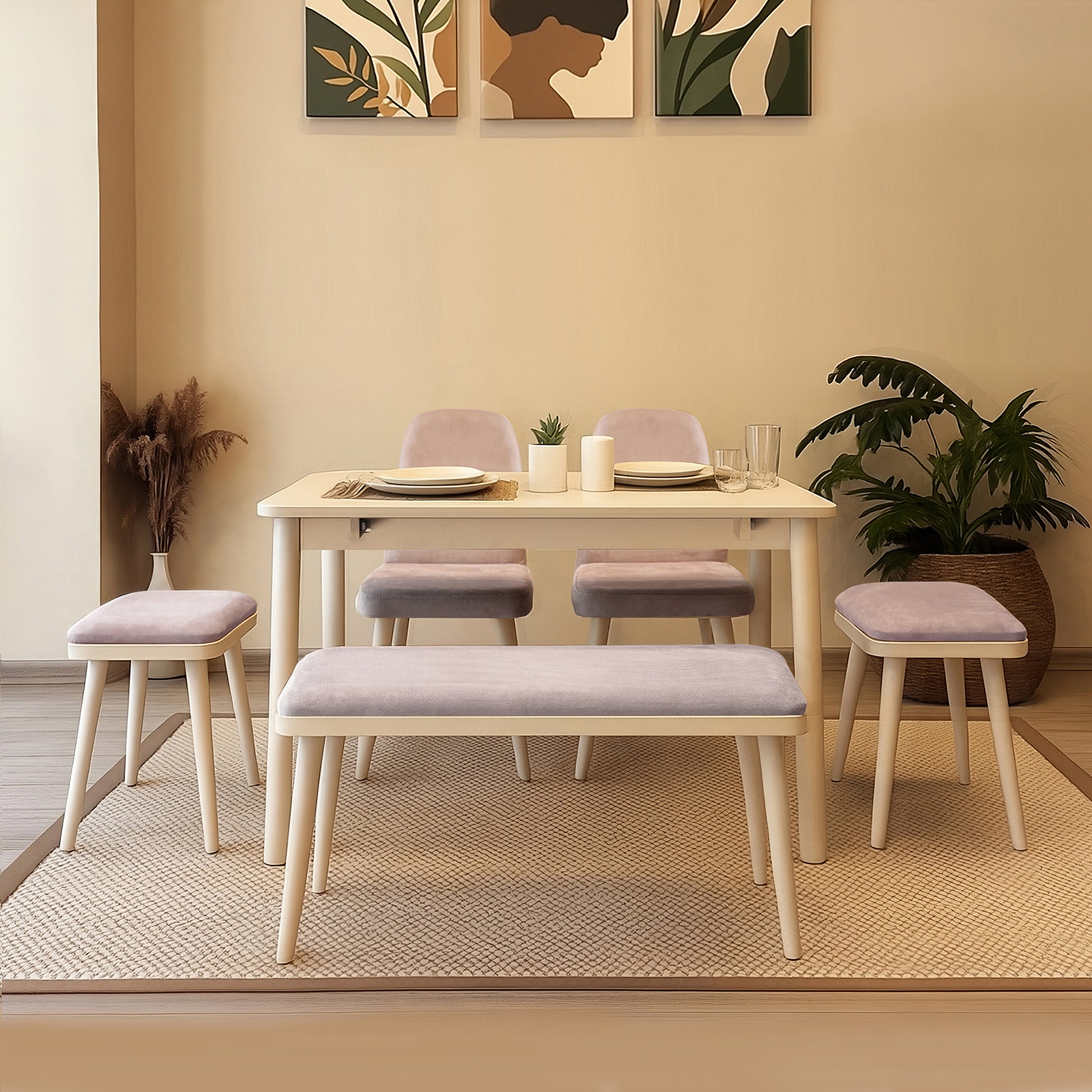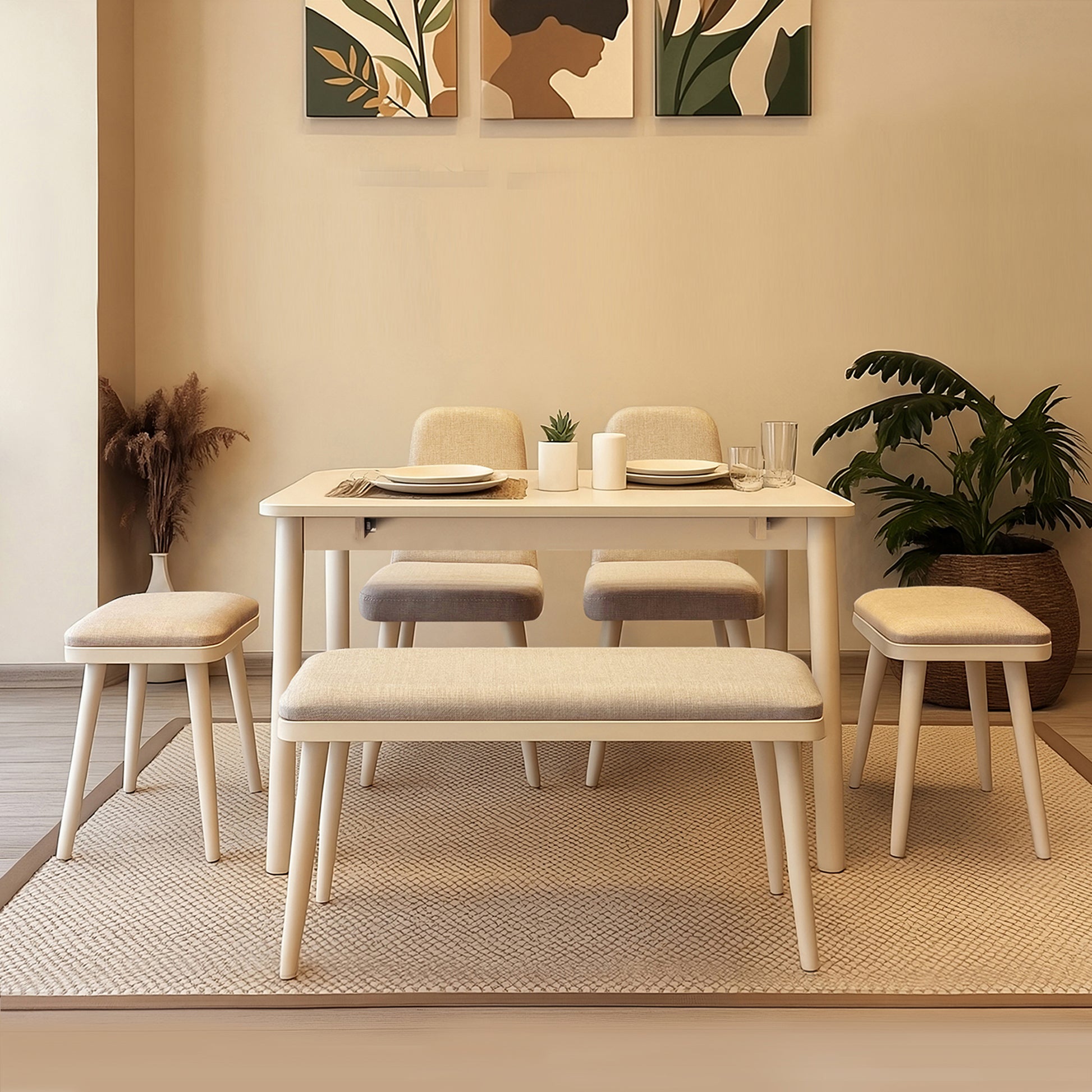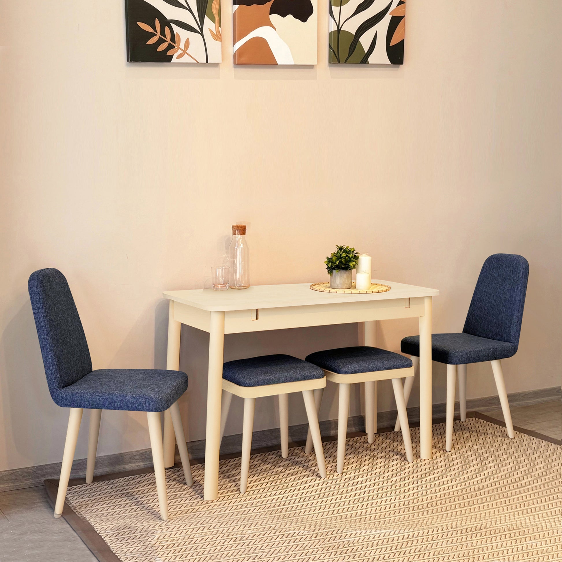 Küçük yaşam alanları için yenilikçi ve pratik bir çözüm sunan bu mini mutfak takımı, hem estetik hem de fonksiyonel tasarımıyla yaşam kalitenizi artırır. Açılır masa fonksiyonu sayesinde ihtiyacınız olduğunda anında geniş bir kullanım alanı sağlar. 1 masa, 2 sandalye, 2 tabure ve 1 bench'ten oluşan toplam 6 parçalık bu zengin set, dar mekanlarda maksimum oturma kapasitesi ve modern bir görünüm sunmak için tasarlanmıştır.