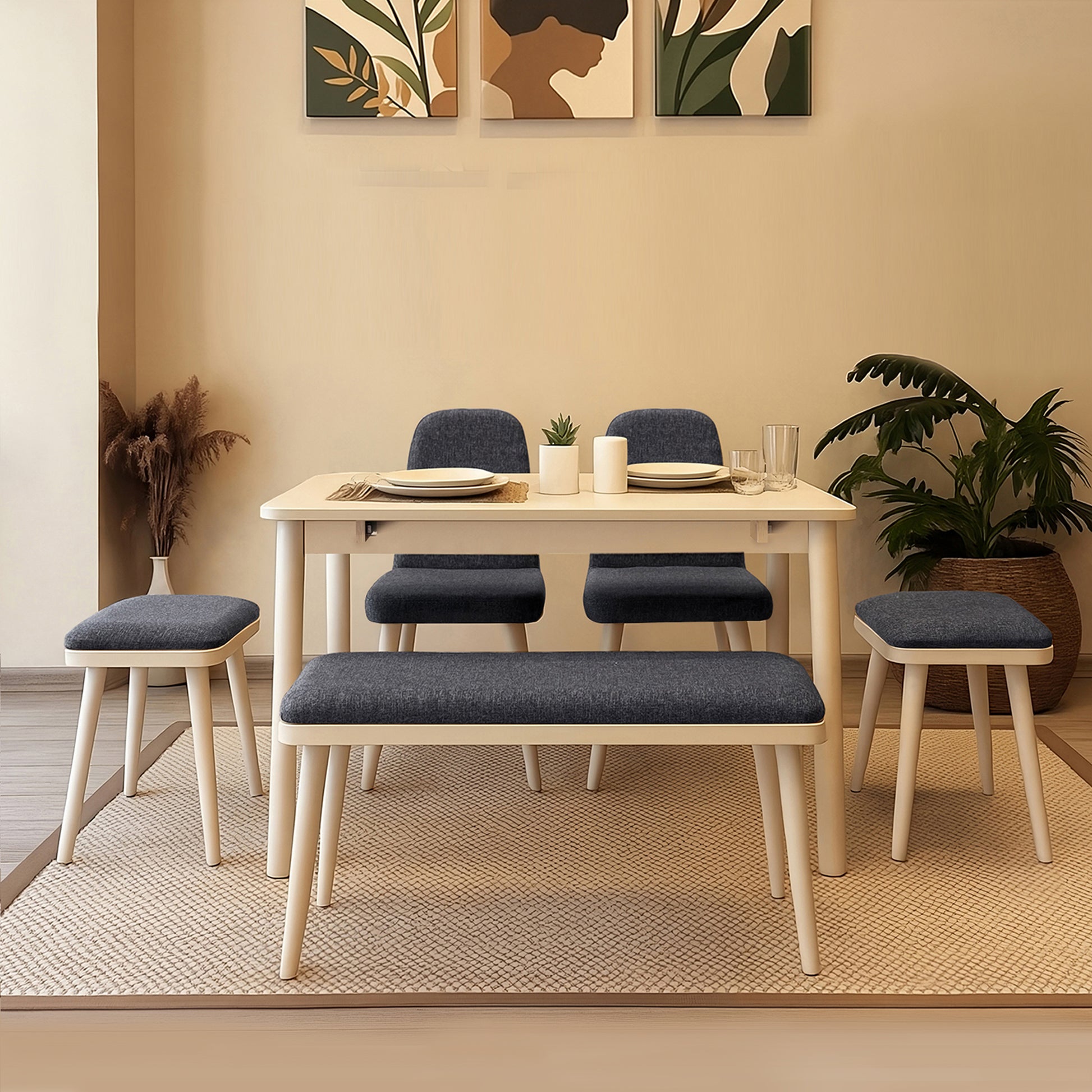 Masa, bench ve tabureler ölçü ve görünüm olarak çok dengeli. Hem şık hem de günlük kullanım için uygun bir takım. Kurulumu da rahatça yapıldı.
