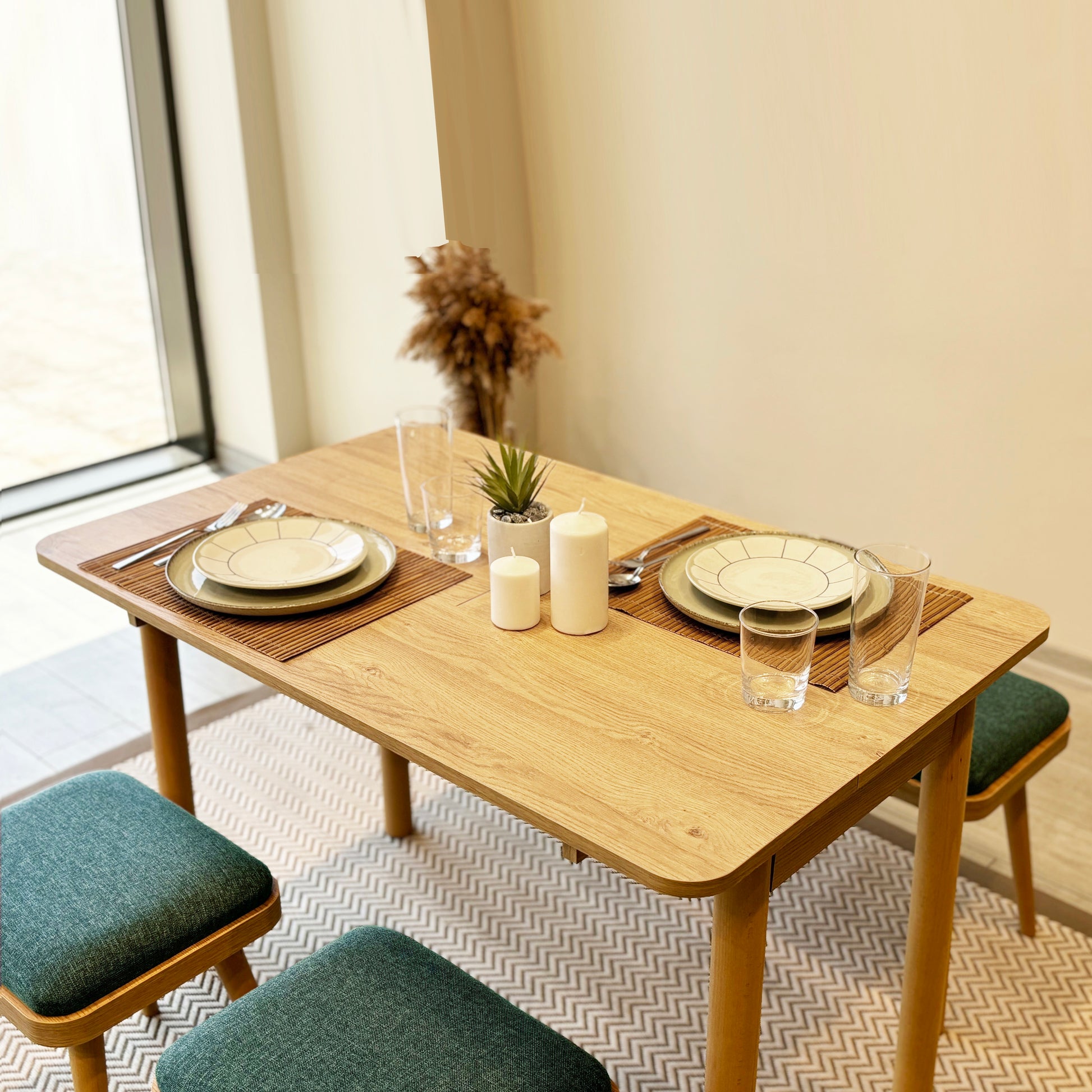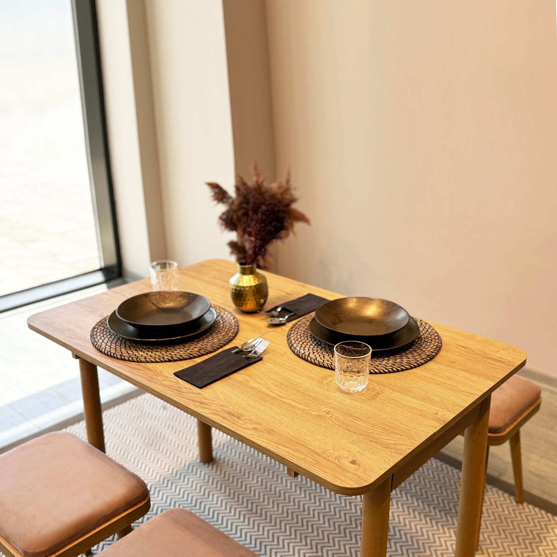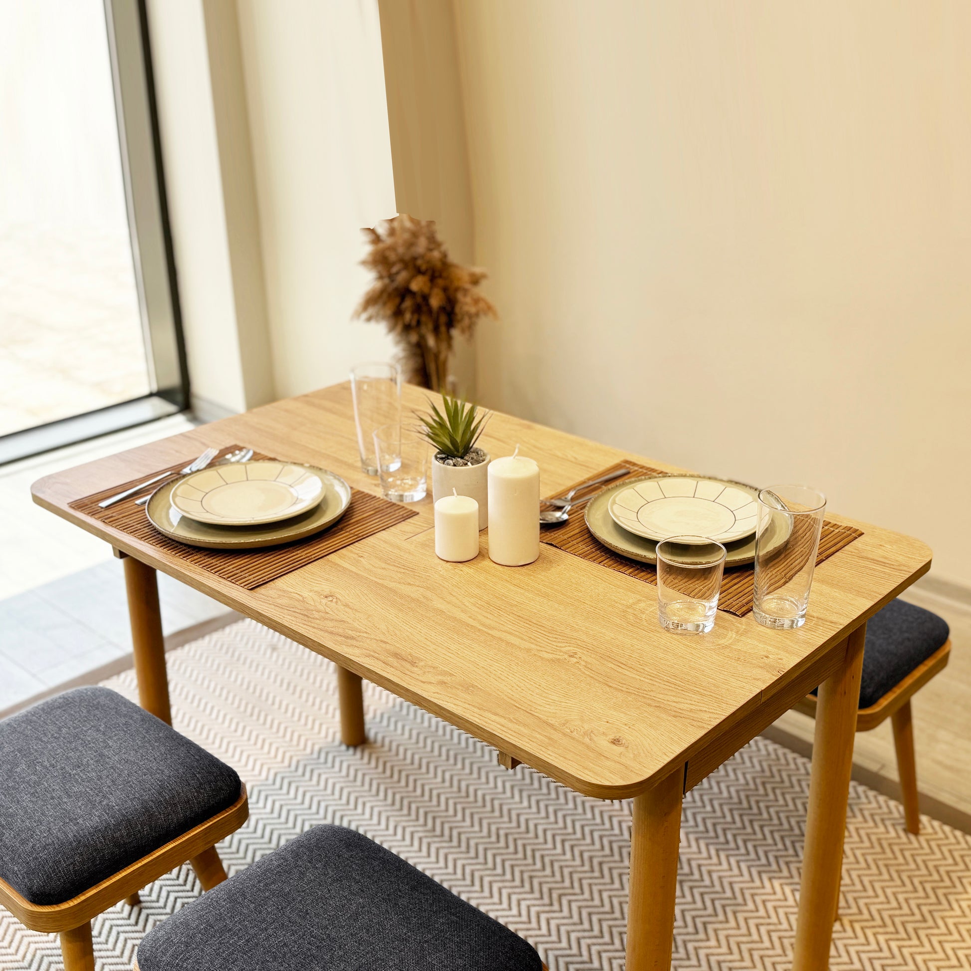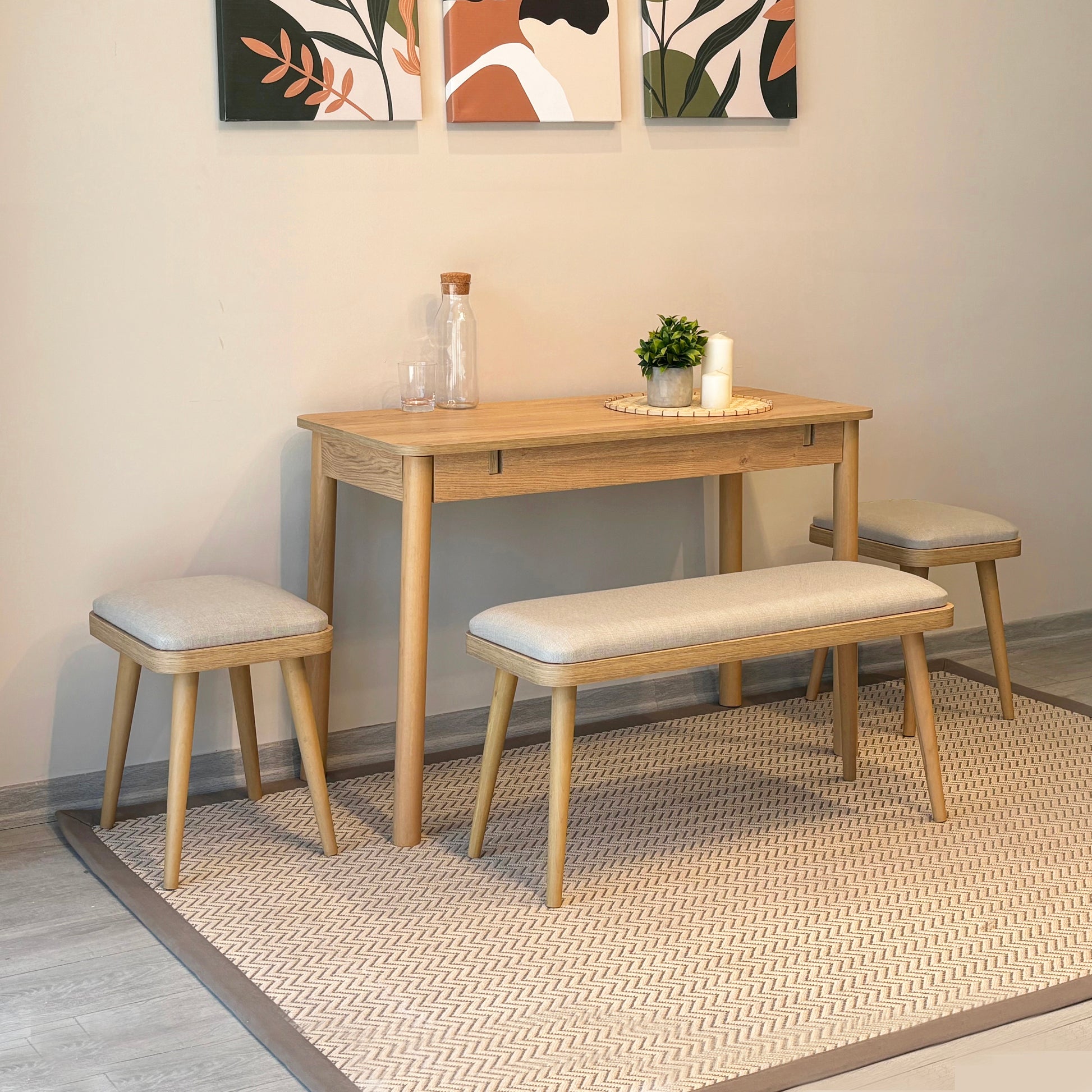 Küçük yaşam alanları için tasarlanan bu mini mutfak masa takımı, modern görünümü ve pratik kullanımıyla günlük yaşama kolaylık sağlar. 1 Masa + 2 Tabure + 1 Bench içeriğiyle geniş ve kompakt bir çözüm sunar ve farklı dekorasyon stillerine uyum sağlar.