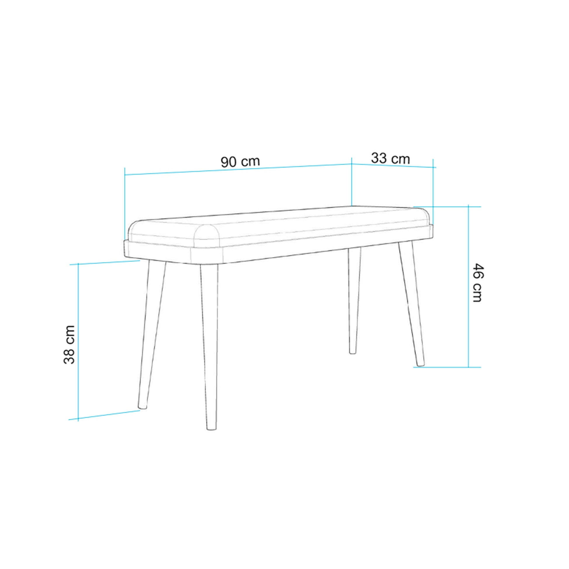 - Oturma alanı: 90 × 33 cm (uzunluk × derinlik)