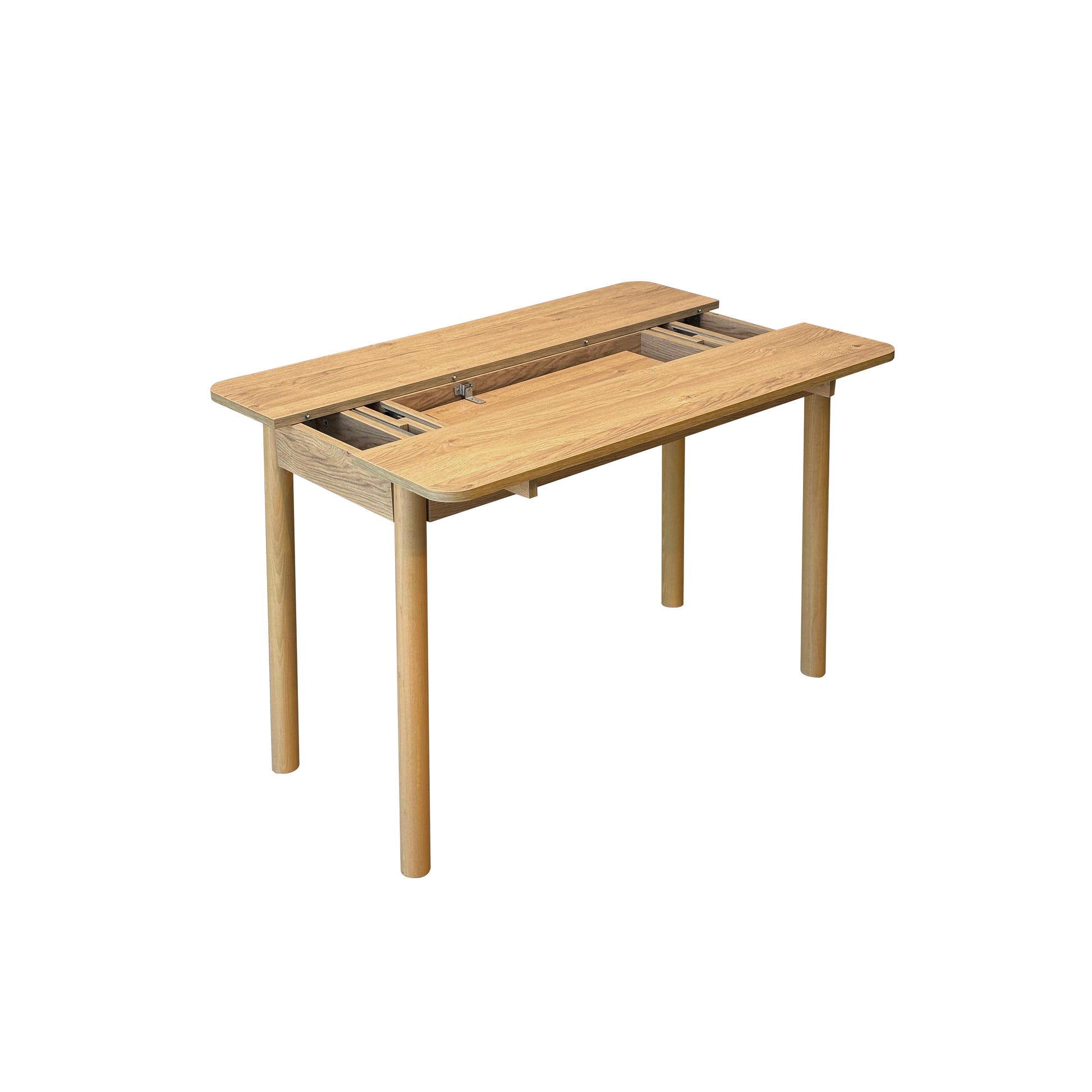 Vina Mini Açılır Mutfak Masası, küçük metrekareli mutfaklarda alan tasarrufu ve fonksiyonelliği bir arada sunar. Kapalıyken sadece 50 cm derinliğiyle bir dresuar kadar az yer kaplayan bu masa, özel mekanizması sayesinde açılarak 70 cm genişliğinde konforlu bir yemek masasına dönüşür. Karina Meşe renginin doğallığı ve masif ahşap ayakların sağlamlığıyla uzun ömürlü ve şık bir kullanım vaat eder.