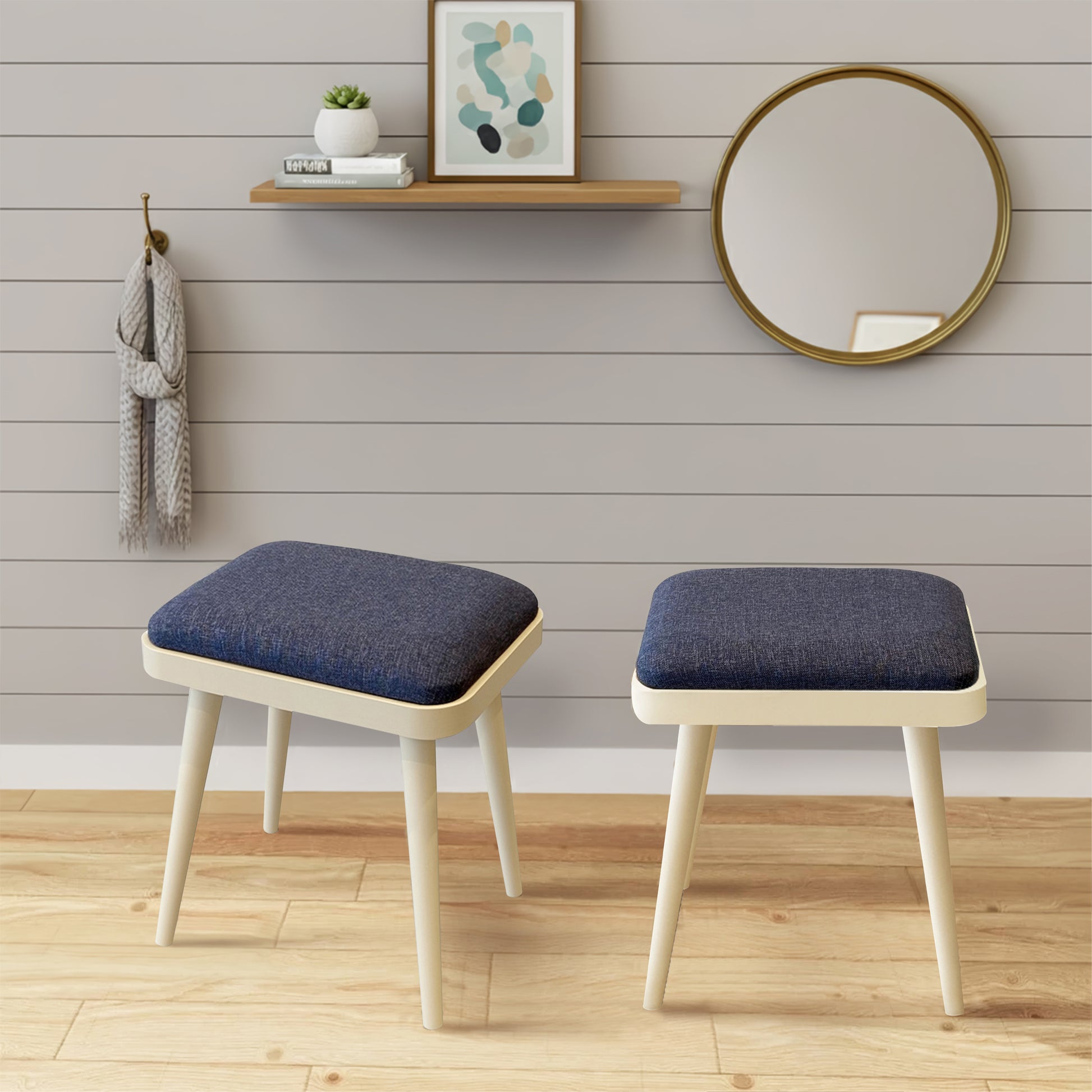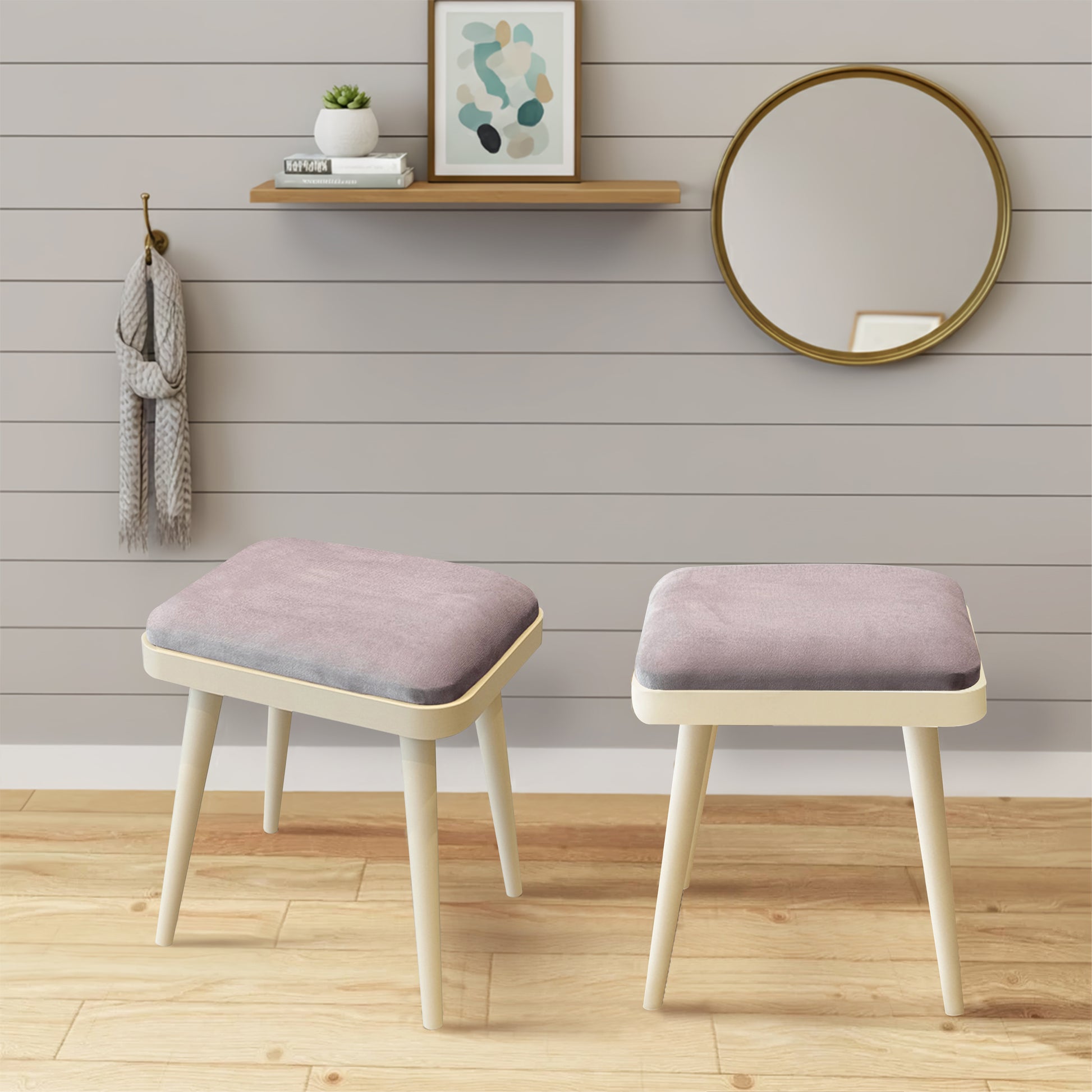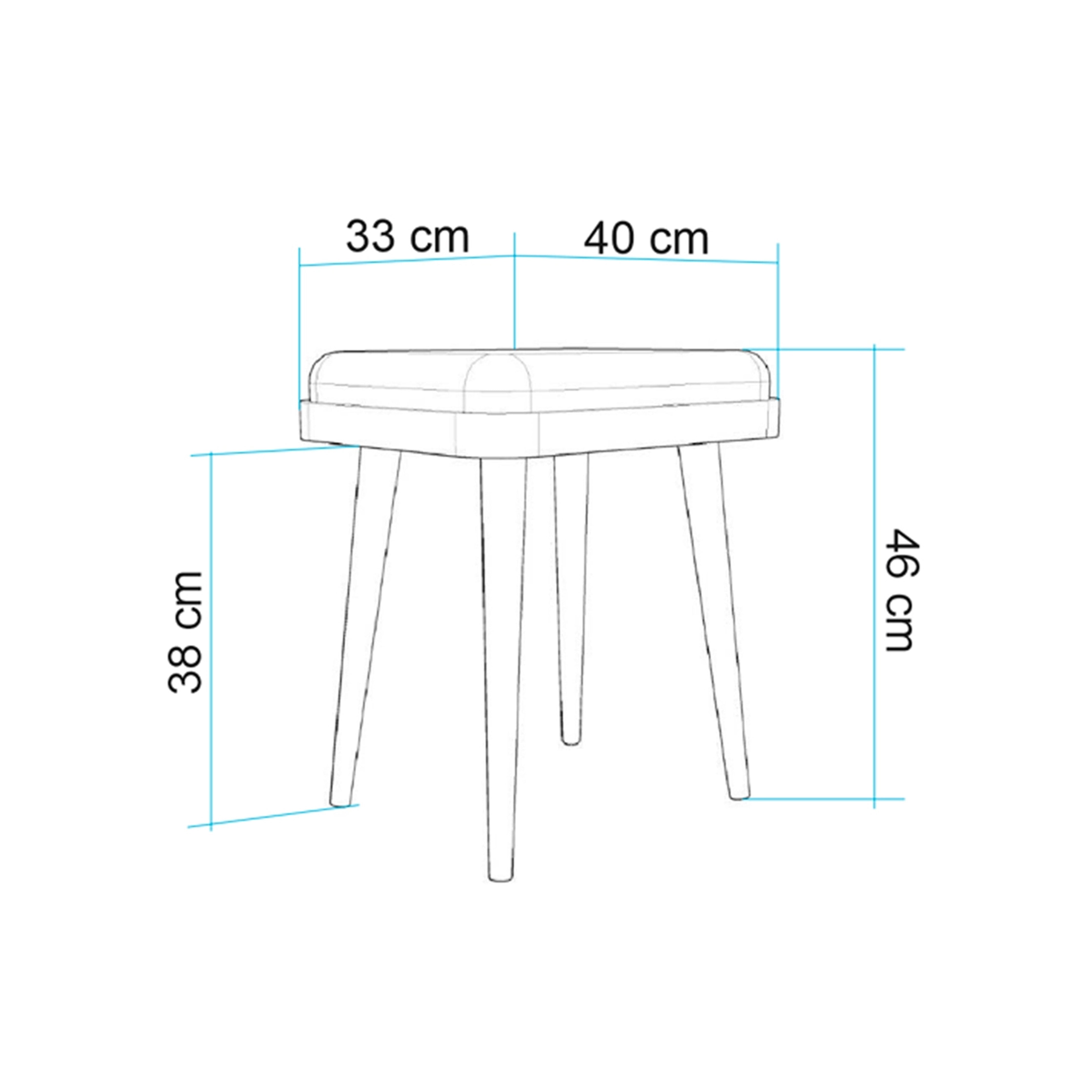 Vina Mini İkili Tabure Takımı, küçük yaşam alanlarında büyük konfor sağlar. Sedef, Krem ve Antrasit tonlarının uyumu ve doğal keten kumaş dokusuyla hem şık hem de dayanıklıdır. 46 cm oturum yüksekliği sayesinde yemek masalarında ek sandalye, makyaj masalarında oturak veya antrelerde dekoratif bir parça olarak kullanılabilir. Hafif yapısı ve ideal ölçüleriyle evin her köşesine kolayca taşınabilir.