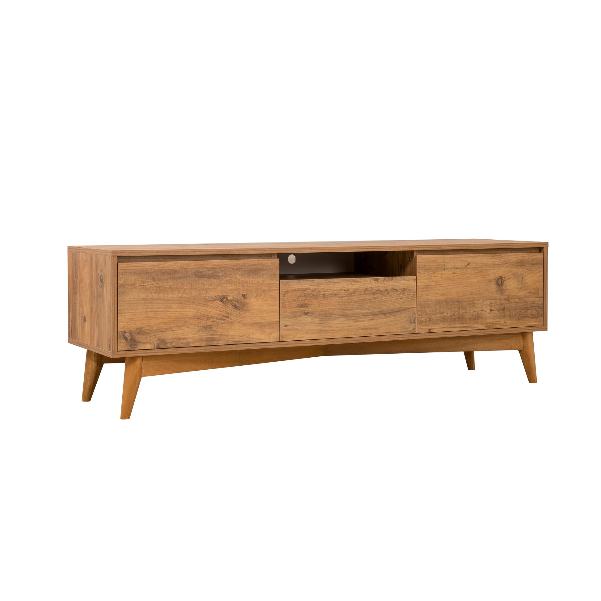 Vina Atlantik TV Ünitesi, modern tasarımın en şık halini yaşam alanınıza taşır. 170 cm genişliği ve Atlantik çam renginin sıcak dokusuyla televizyon köşenizi odanın yıldızı yapar. 20 cm yüksekliğindeki %100 Kayın Masif ayakları hem estetik bir duruş sergiler hem de temizliği kolaylaştırır. Geniş kapaklı bölmeleri ve farklı yüksekliklerdeki açık raflarıyla medya cihazlarınız için mükemmel bir düzenleyicidir.