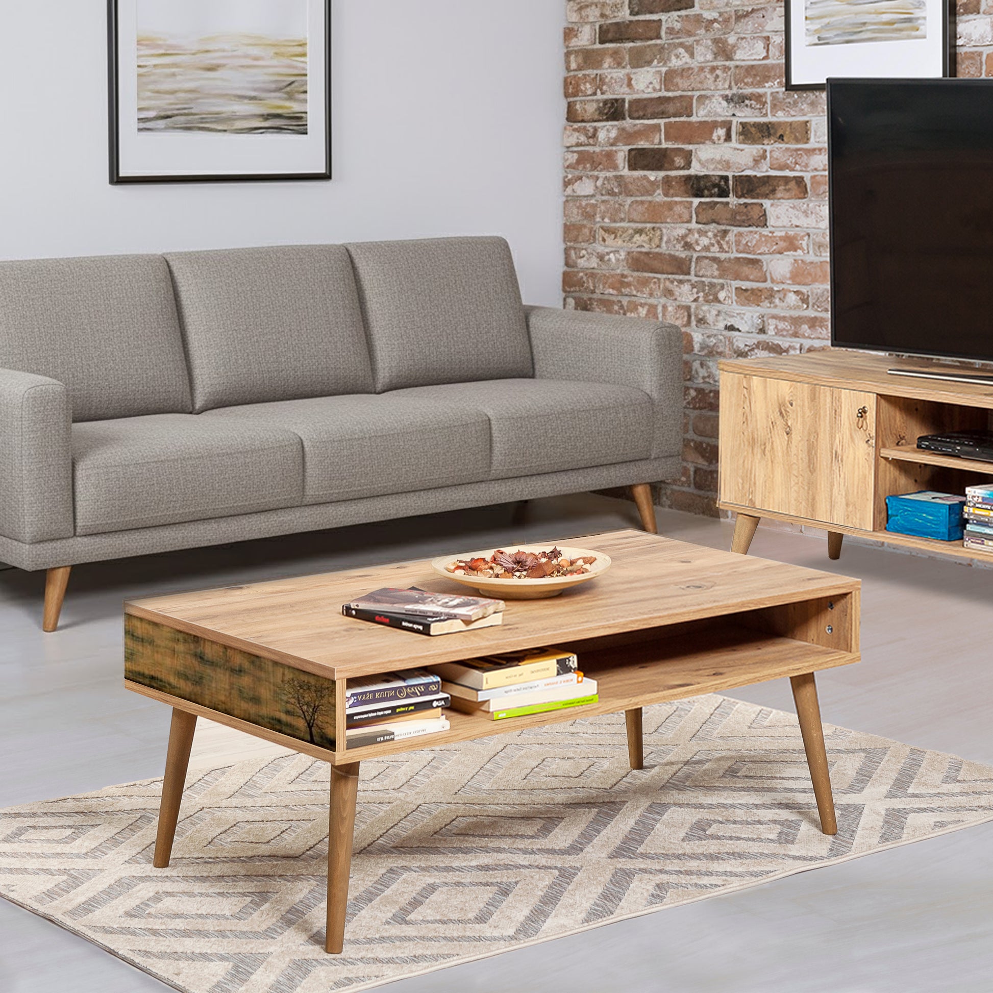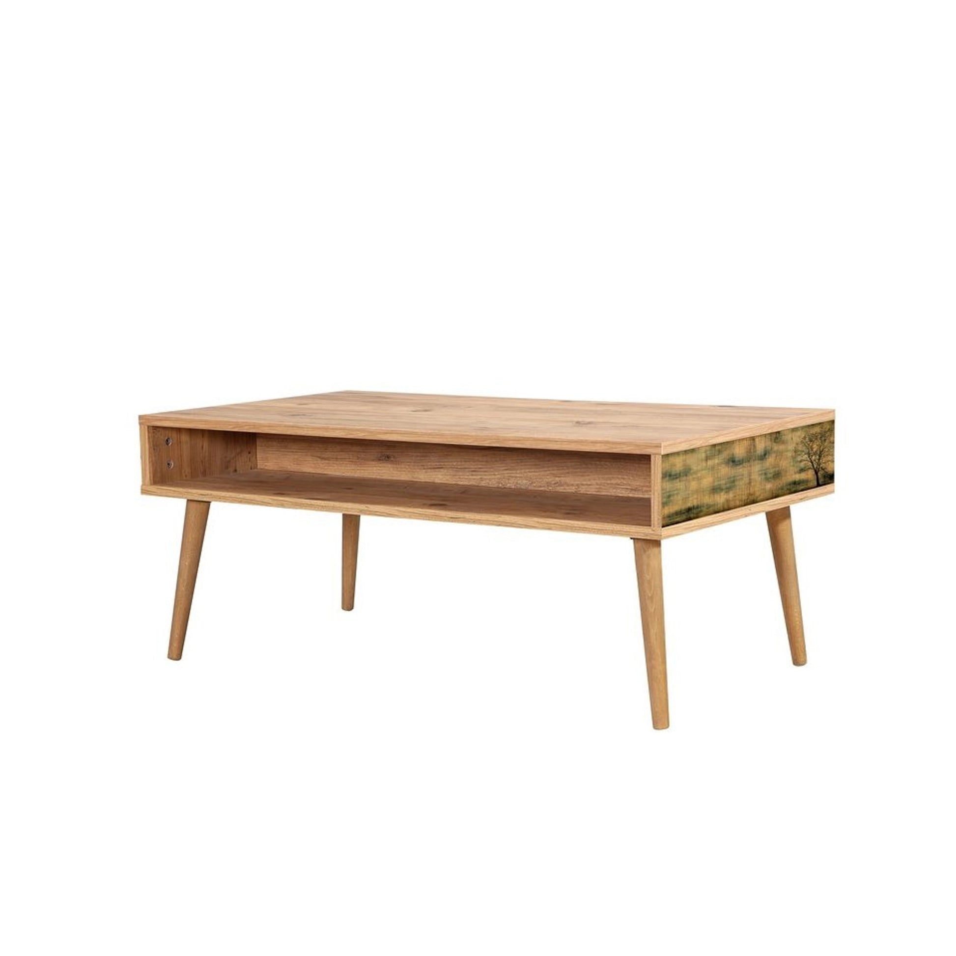 Viva Orta Sehpa, Atlantik çam renginin sıcaklığını masif ahşap ayakların sağlamlığıyla buluşturur. 110 cm genişliği ve 60 cm derinliği ile geniş oturma gruplarınız için ideal bir kullanım alanı sunar. Yerden yüksek yapısı ve modern tasarımıyla salonunuza ferah ve şık bir atmosfer katar.