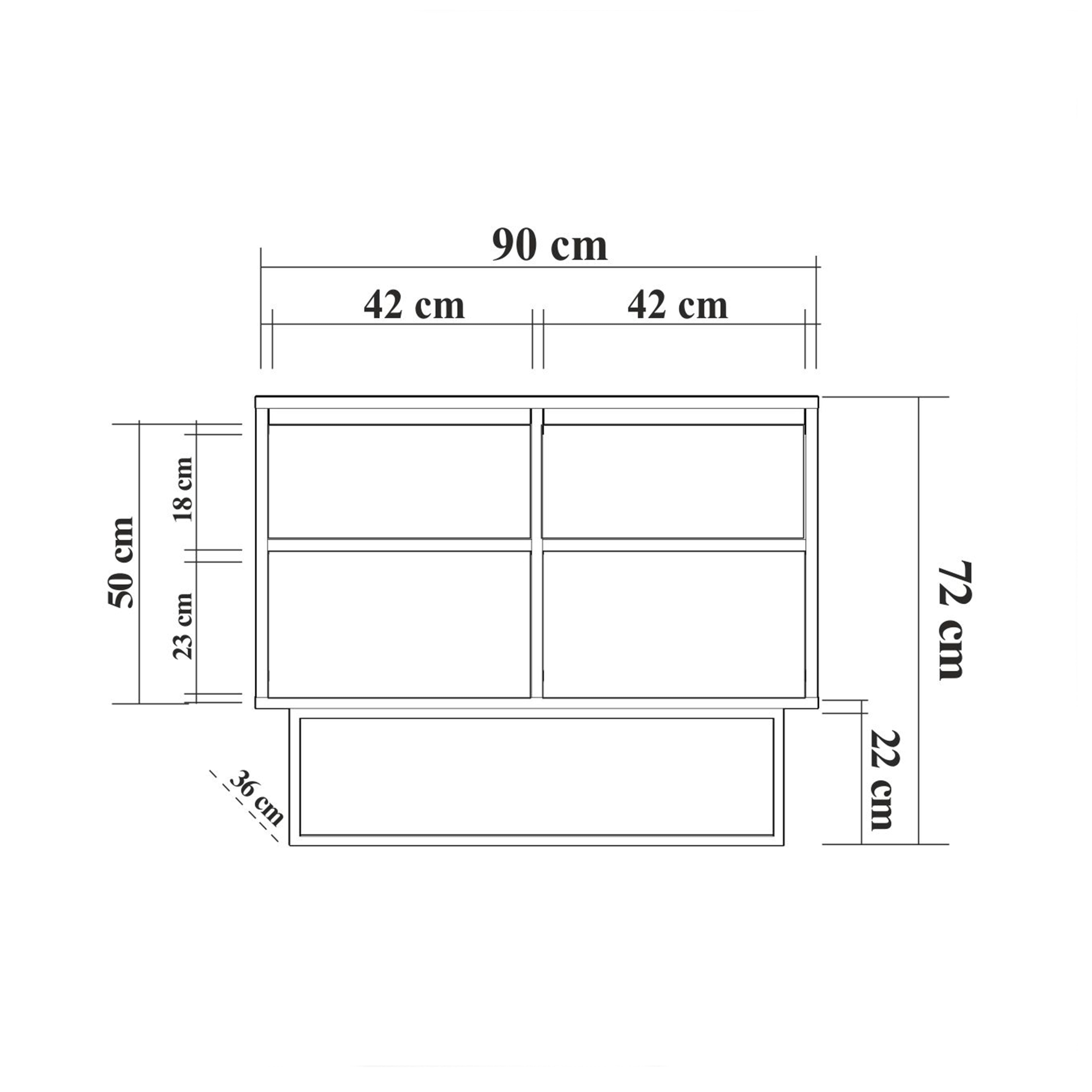 Laxus Zuri Konsol, kompakt boyutları ve güçlü duruşuyla dar alanlar için ideal bir depolama çözümüdür. 90 cm genişliği ve 25 mm - 18 mm kalınlığındaki malzeme yapısıyla hem sağlam hem de estetik bir görünüm sunar. 20x20 mm metal profil ayakları, modern tasarımı desteklerken uzun ömürlü kullanım sağlar.