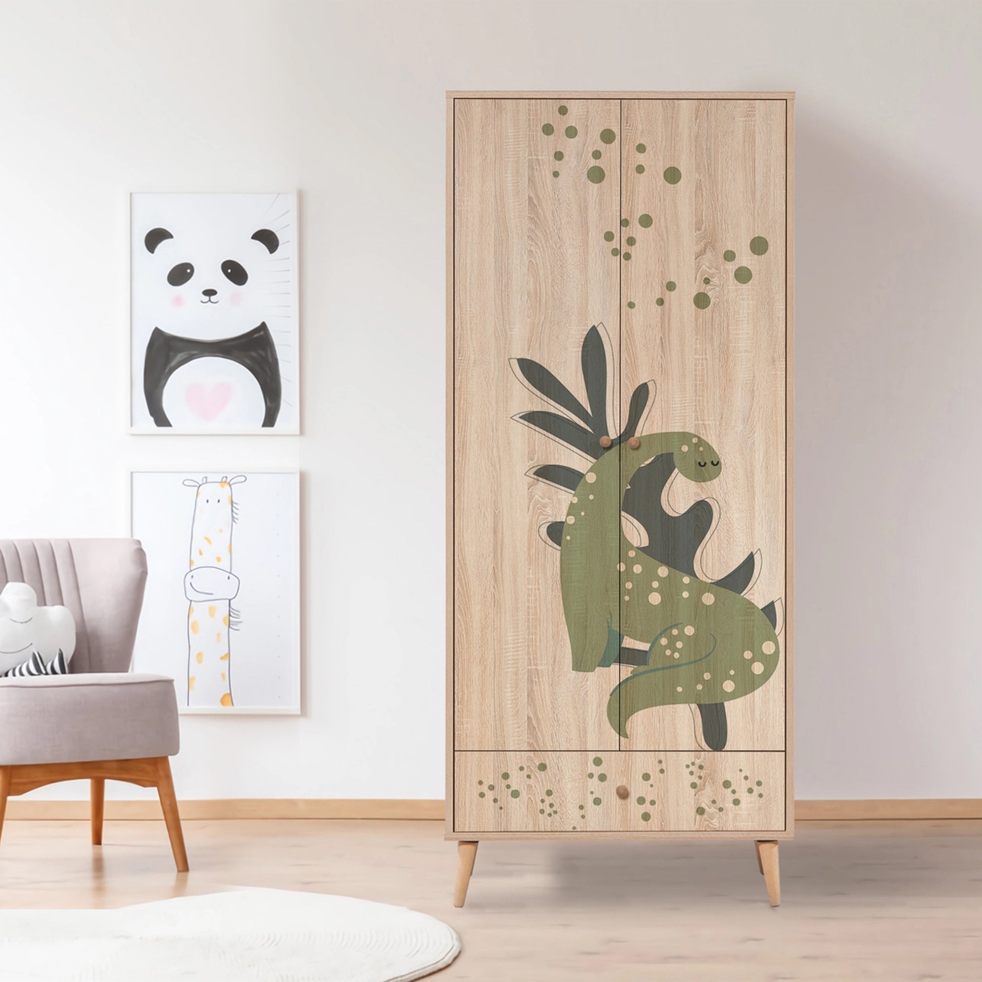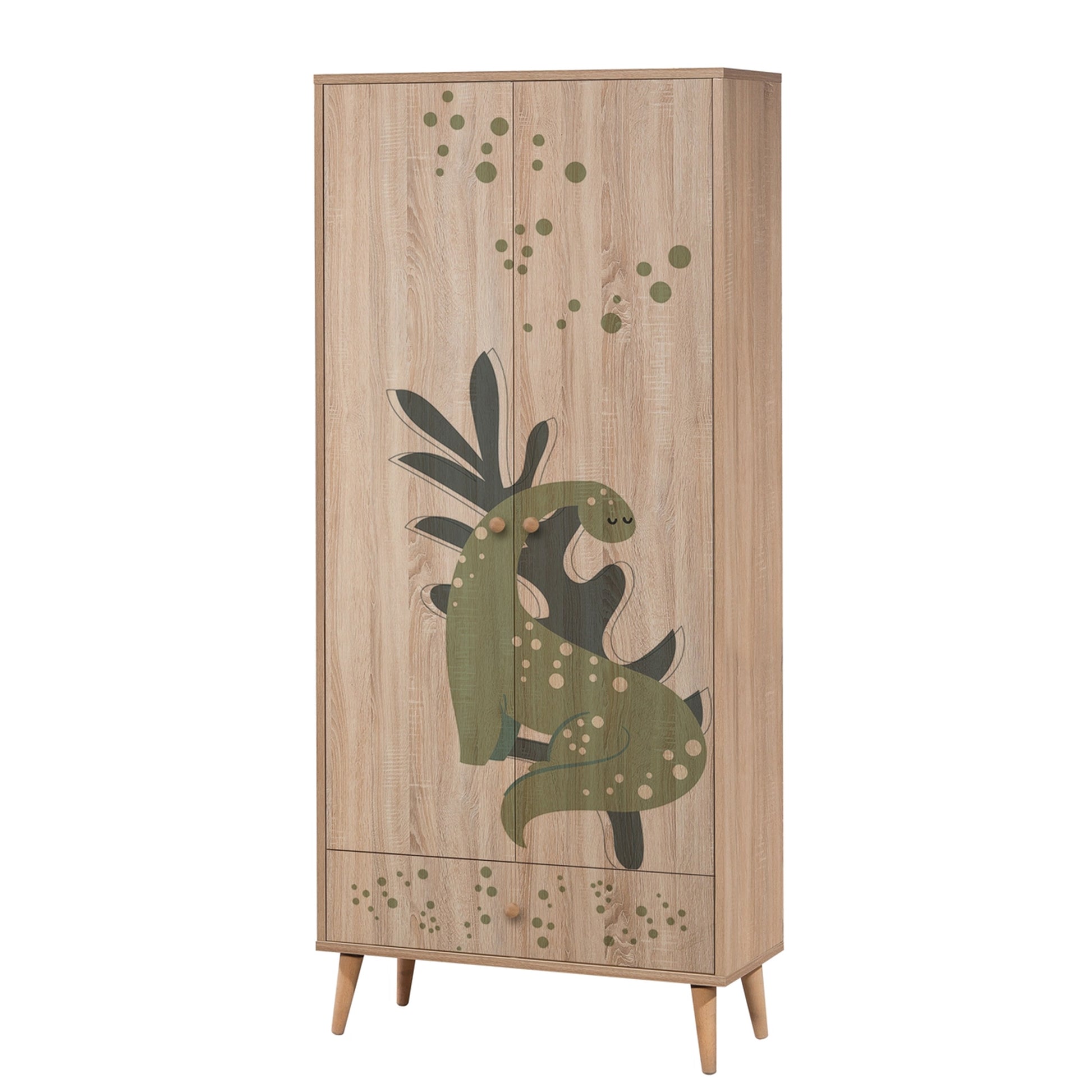 City Sonomo Desenli Gardırop, yatak odanıza veya genç odanıza sanatsal bir dokunuş katar. 80 cm genişliği ve 190 cm yüksekliği ile kompakt ama hacimli bir depolama sunar. Kapaklarında kullanılan özel UV dijital baskı teknolojisi ile desenlendirilmiş olup, Art serisinin imzası olan masif konik ahşap ayaklarla tamamlanmıştır. Geniş askılık alanı ve raf düzeniyle kıyafetlerinizi düzenli tutar.