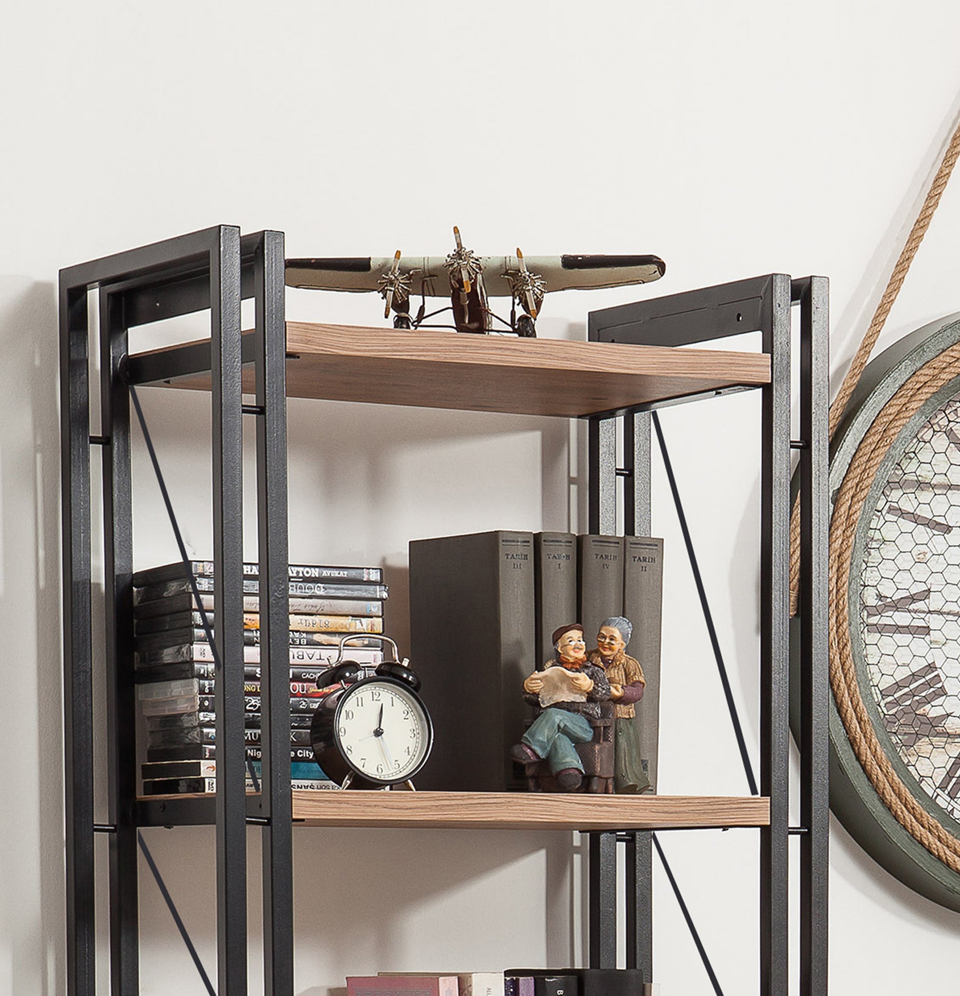 Cosmo Penta Kitaplık, estetik ve sağlamlığı bir arada sunan özel bir tasarımdır. Ürünün en dikkat çeken özelliği, standartların üzerindeki 25 mm kalınlığındaki raflarıdır; bu yapı sarkma yapmadan ağır kitaplarınızı güvenle taşımanızı sağlar. Teknik çizimde belirtilen 36 cm'lik geniş raf aralıkları, büyük boy dosyalar ve sanat kitapları için ideal bir kullanım sunar. Siyah metal profiller ile Atlantik çam renginin kontrastı, çalışma odalarından salonlara kadar her mekana modern bir hava katar.