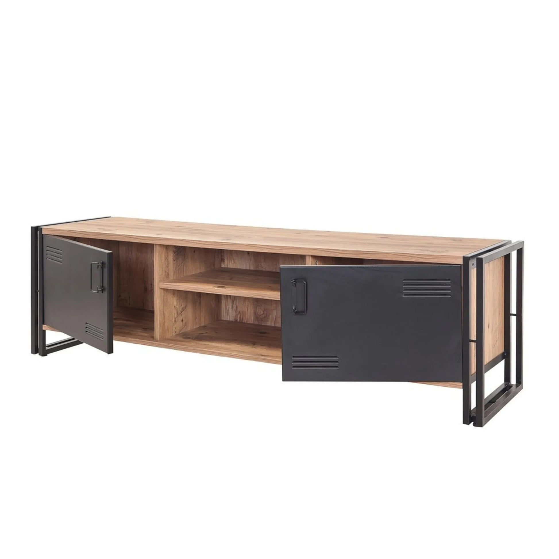 Cosmo Rex TV Ünitesi, Atlantik çam dokusunu endüstriyel tasarımın gücüyle birleştirir. 180 cm genişliği ve demir sac kaplama özel kapakları ile salonunuzun odak noktası olmaya adaydır. 20x20 mm metal profil ayakları, geniş depolama alanları ve 1. kalite malzeme yapısıyla hem şıklığı hem de uzun ömürlü kullanımı garanti eder.