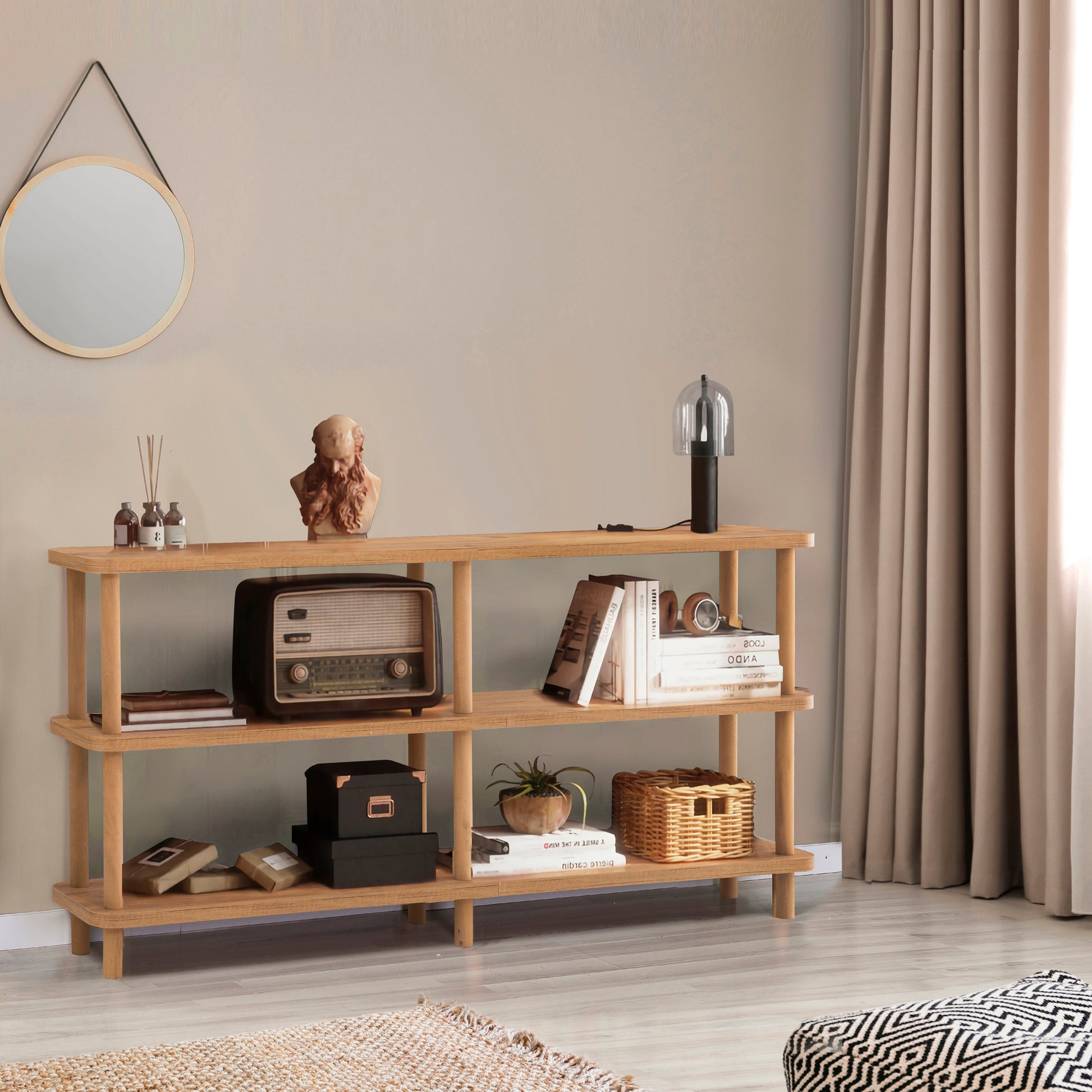 Dora Raca Kitaplık, yatay formu ve Natural rengin sıcaklığıyla yaşam alanlarınıza modern bir dokunuş katar. 150 cm genişliği ve 2,5 cm kalınlığındaki güçlendirilmiş raf yapısıyla hem sağlam hem de estetik bir sergileme alanı sunar. Gürgen ağacı ayakları, ürüne yerden yükseklik kazandırarak temizlik kolaylığı ve zarif bir duruş sağlar.