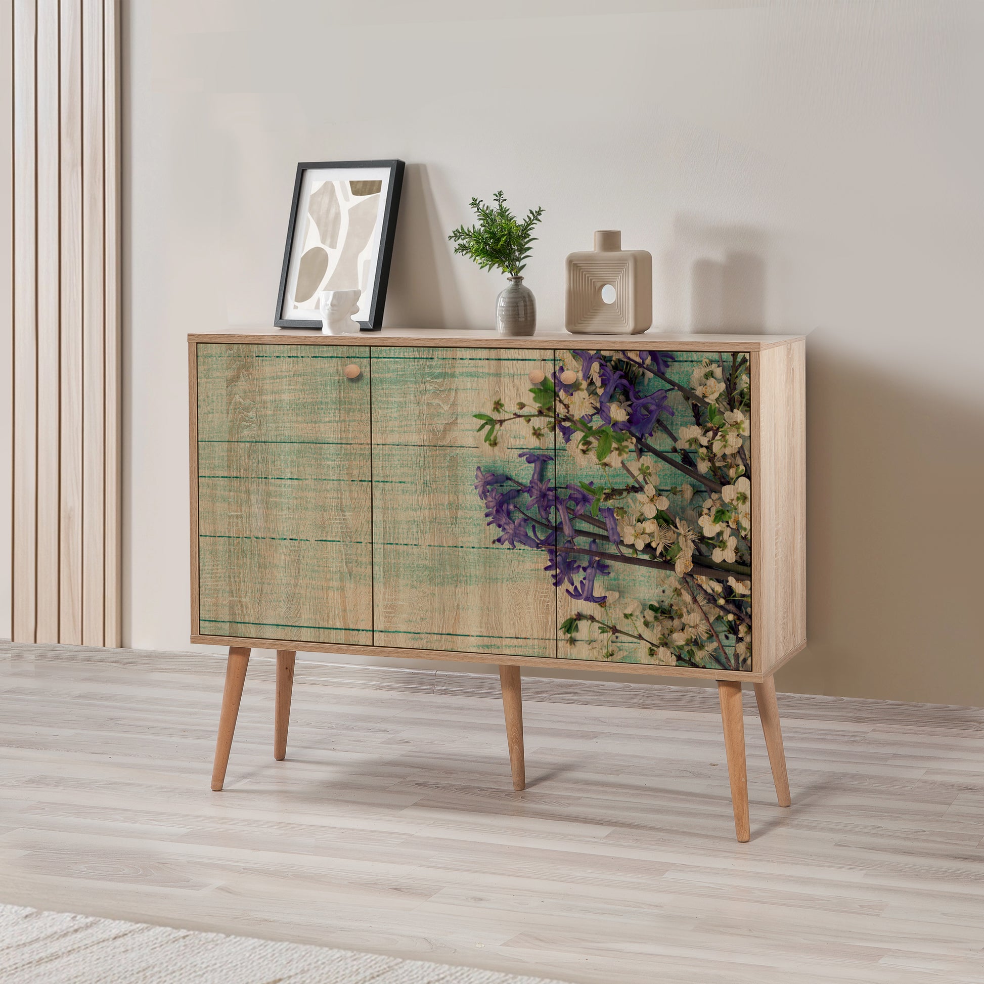 MEGA Konsol, doğadan ilham alan desenleri ve masif ahşap detaylarıyla yaşam alanınıza sanatsal bir dokunuş katar. 120 cm genişliği ve 94 cm yüksekliği ile geniş bir depolama alanı sunarken, masif ahşap ayakları ve kulpları sayesinde yıllara meydan okuyan sağlam bir yapıya sahiptir. UV dijital baskı teknolojisiyle işlenen yüzeyi, estetiği dayanıklılıkla buluşturur.