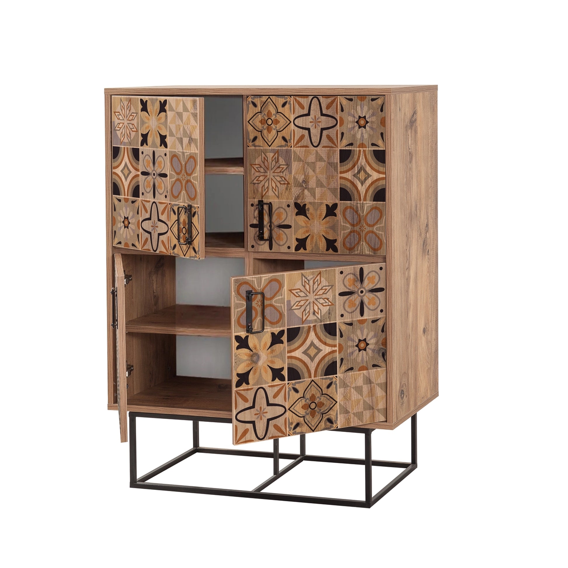 Quantum Solo Konsol, endüstriyel metal kulpları ve çok yönlü tasarımıyla evinizin her köşesine uyum sağlar. 93 cm genişliği ve 115 cm yüksekliği ile antreden mutfağa, banyodan yatak odasına kadar geniş bir kullanım alanı sunar. Metal profil yapısı ve ultraviyole dijital baskı detaylarıyla hem şık hem de dayanıklı bir depolama çözümüdür.