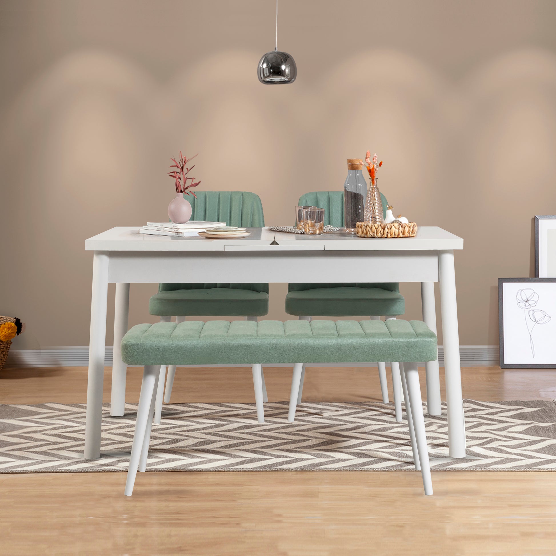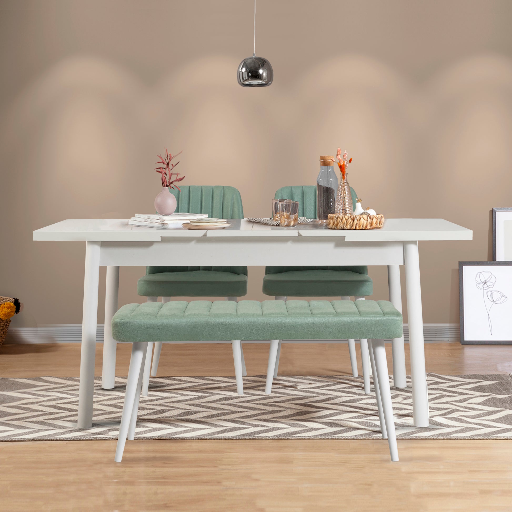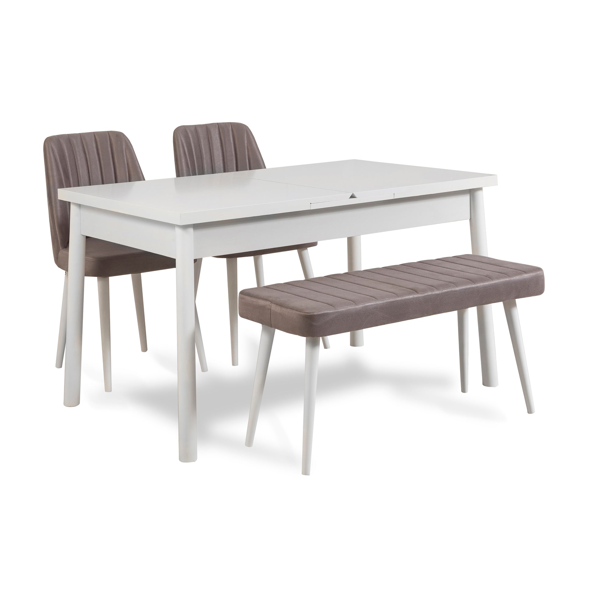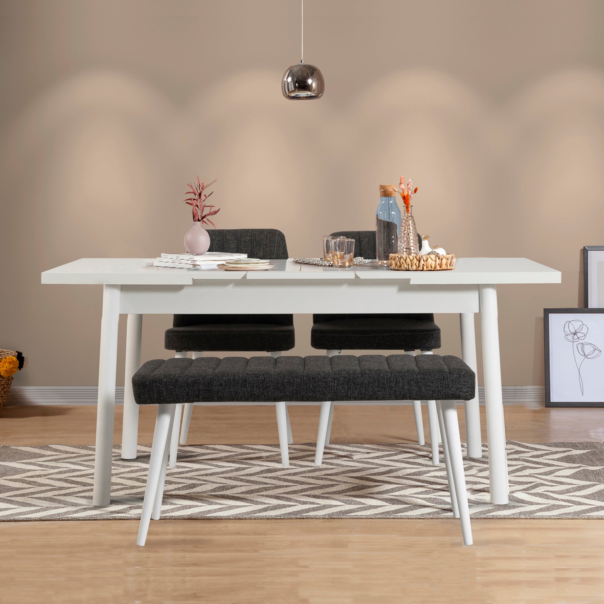 Stormi Açılır Mutfak Masa Takımı, Beyaz ve Antrasit renklerin modern uyumunu mutfağınıza taşır. 1 Açılır Masa + 2 Sandalye + 1 Bench içeriğiyle hem günlük kullanımda yer tasarrufu sağlar hem de misafirleriniz için kolayca genişler. 1. kalite suntalam yapısı ve keten kumaş detaylarıyla şıklığı ve dayanıklılığı bir arada sunar.