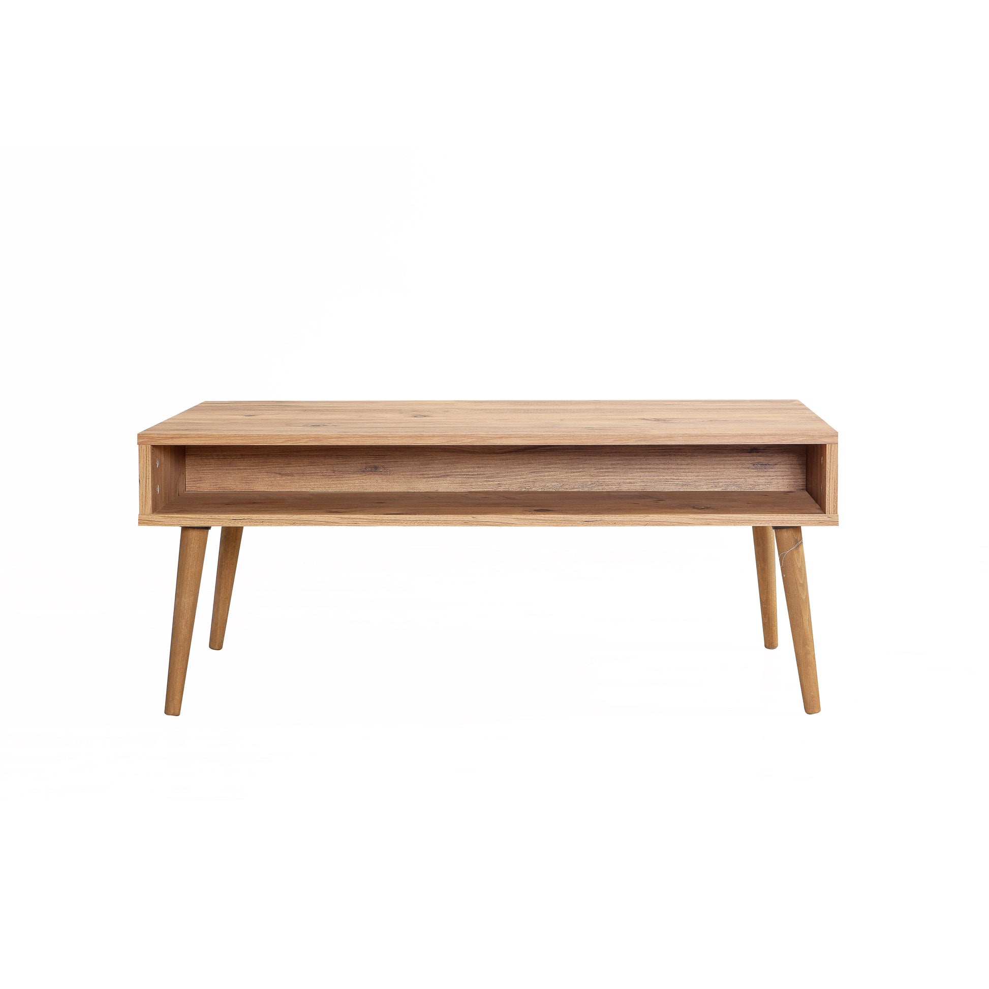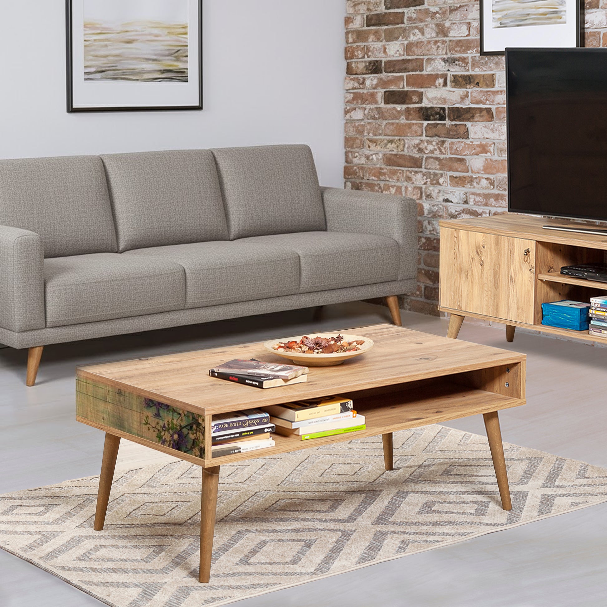 Viva Orta Sehpa, Atlantik çam renginin sıcaklığını masif ahşap ayakların sağlamlığıyla buluşturur. 110 cm genişliği ve 60 cm derinliği ile geniş oturma gruplarınız için ideal bir kullanım alanı sunar. Yerden yüksek yapısı ve modern tasarımıyla salonunuza ferah ve şık bir atmosfer katar.