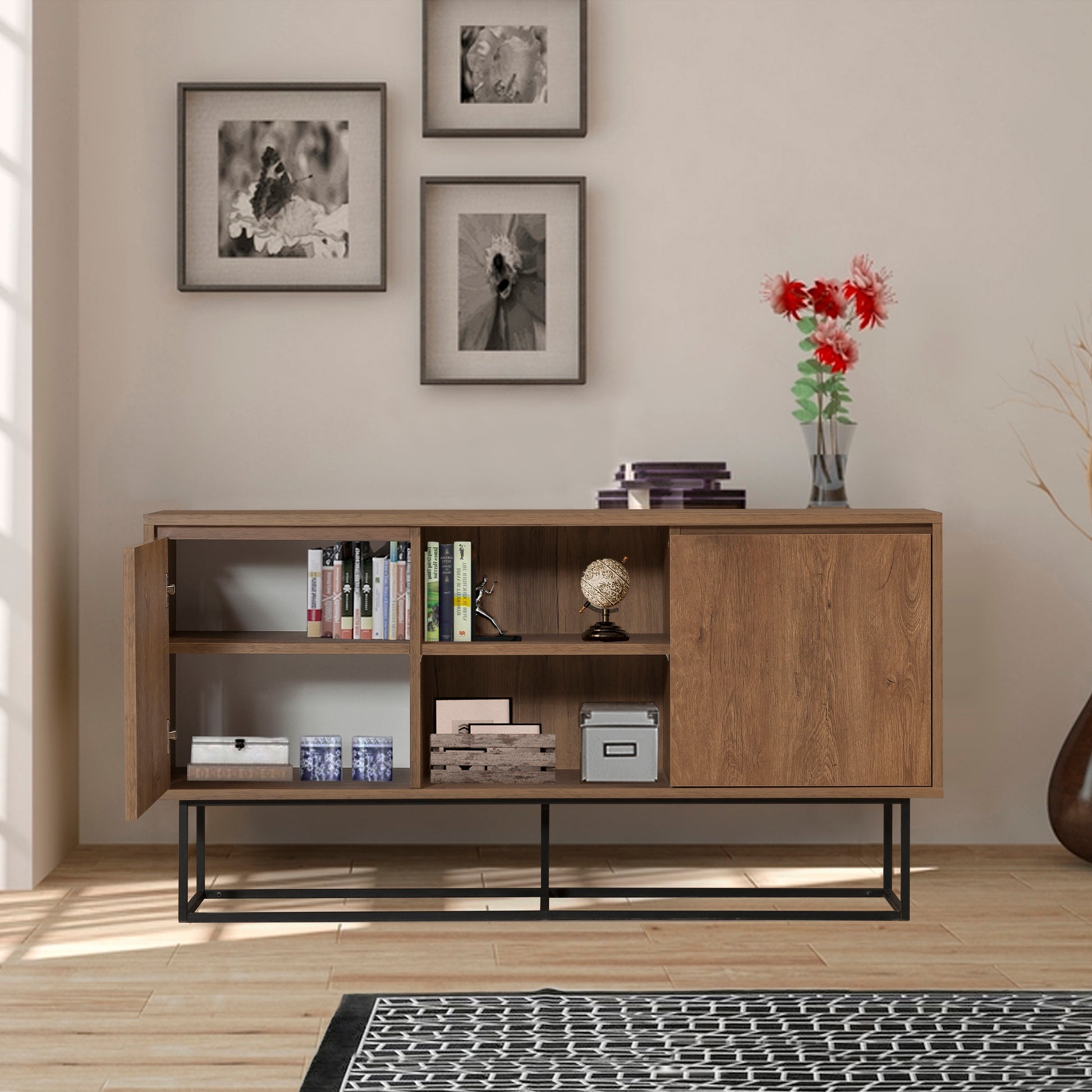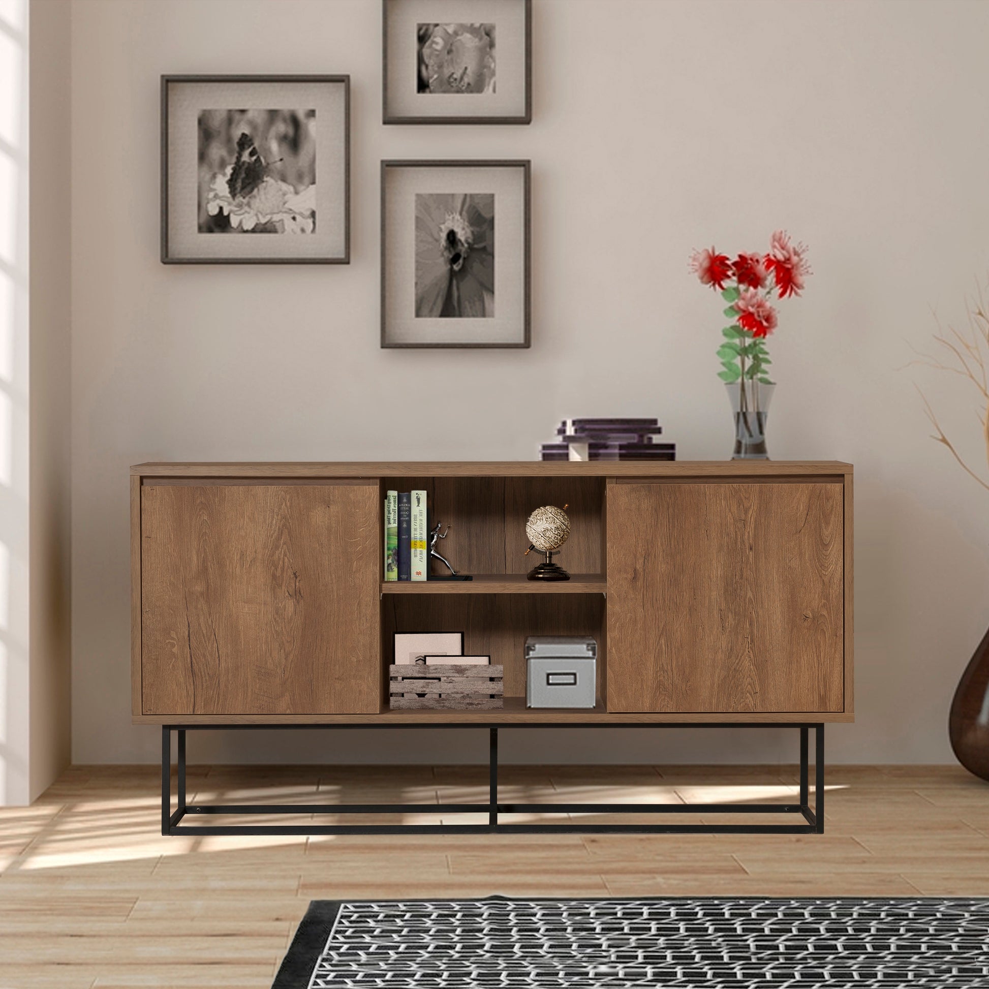 Laxus Zela Raflı Konsol, modern depolama çözümlerini estetik bir tasarımla sunar. 140 cm genişliği ve 25 mm - 18 mm kalınlığındaki sağlam yapısıyla salonunuza değer katar. 20x20 mm metal profil ayakları ve raflı dizaynı sayesinde hem dayanıklı hem de fonksiyonel bir kullanım sağlar.